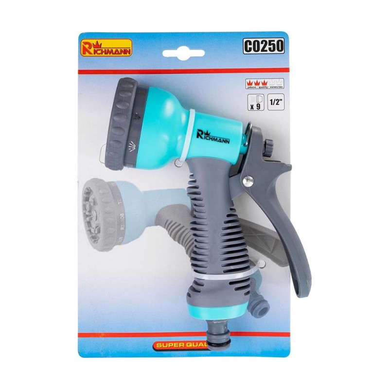 De Richmann Plastic Spuit heeft negen instelbare functies en is ontworpen met een speciale drukregelknop. Het pistool heeft ook een vergrendeling voor continu gebruik. Gemaakt van een sterke ABS en metaal, biedt het duurzaamheid en weerbestendigheid, terwijl de ergonomische antislipgreep comfortabel in de hand ligt. Daarnaast is het eenvoudig aan te sluiten op een standaard ½' tuinslang.