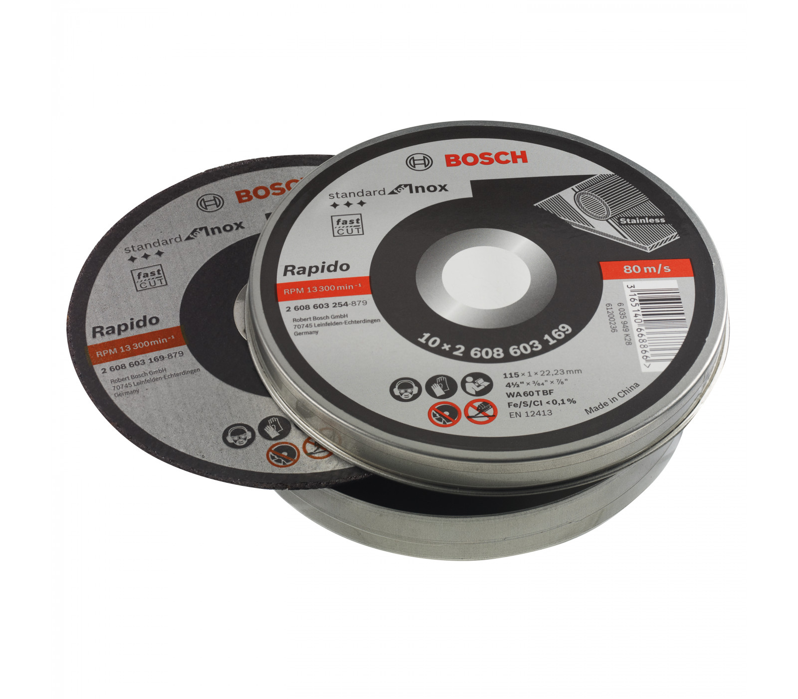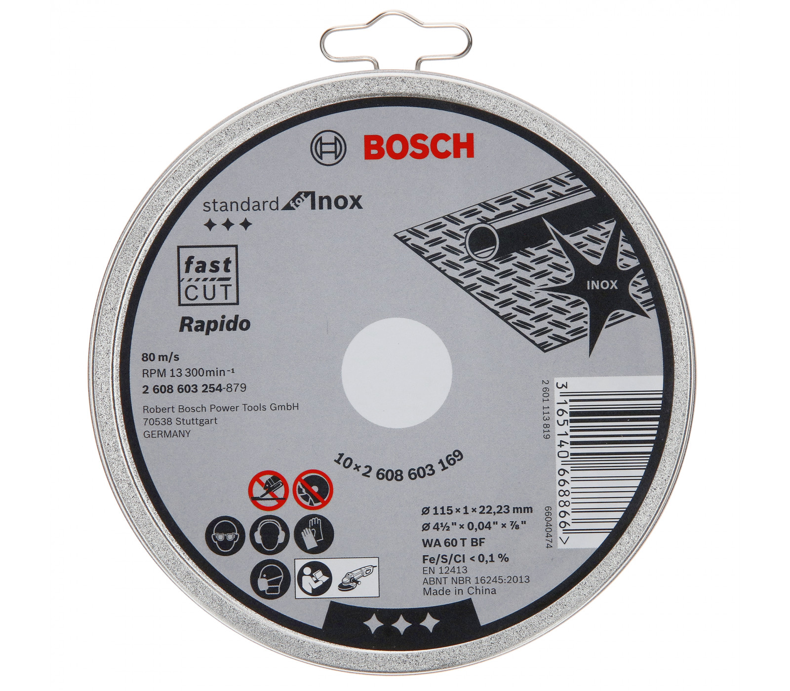 Pjovimo diskas plienui Bosch,Inox Rapido WA 60 T BF, 115 mm, 10 vnt.