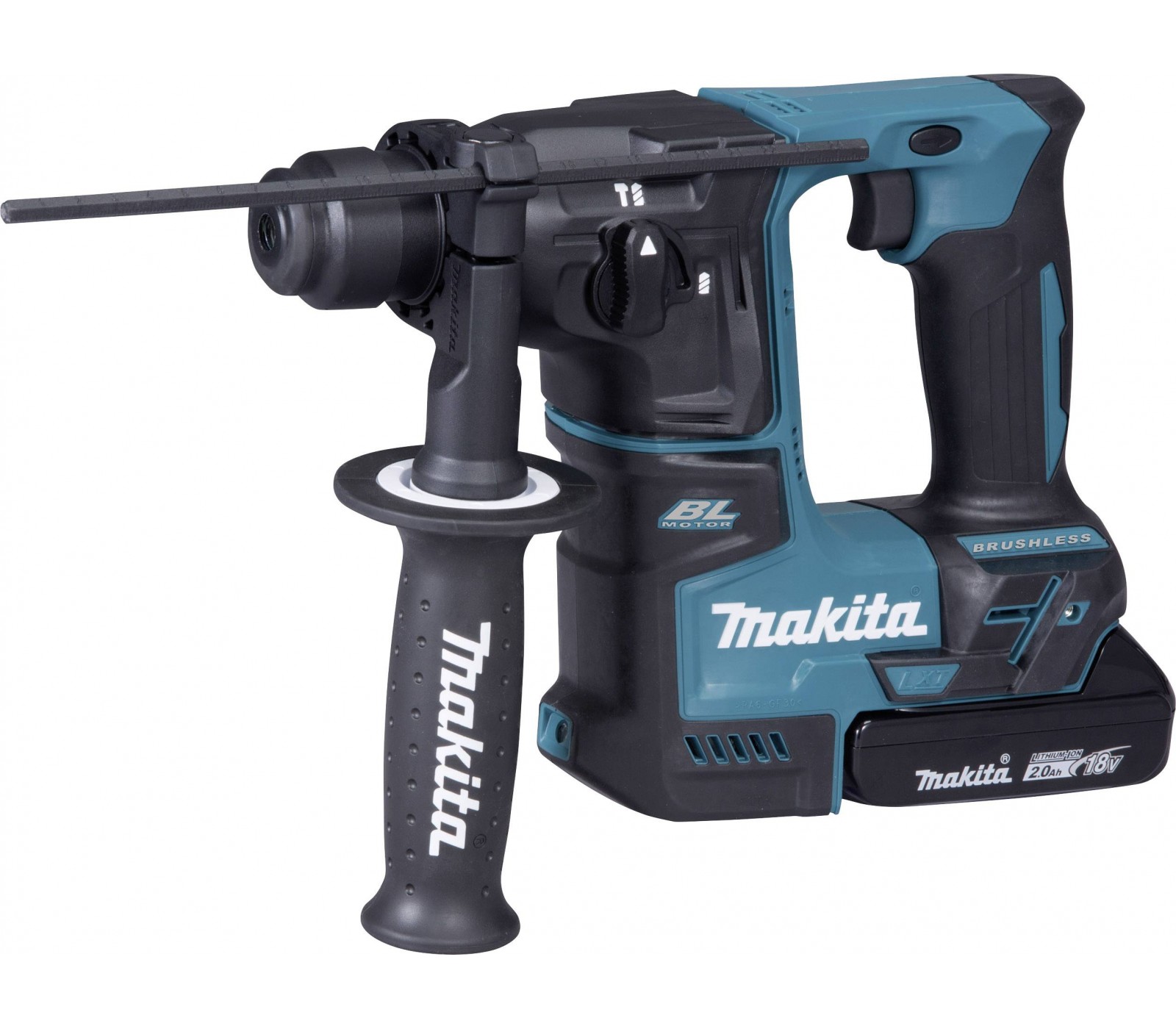 Makita DHR171RAJ 18 V akumuliatorinio perforatoriaus rinkinys su 2 x 2 Ah baterijomis, įkrovikliu ir lagaminu yra galingas, kompaktiškas ir patogus įrankis gręžimui ir kalimui.