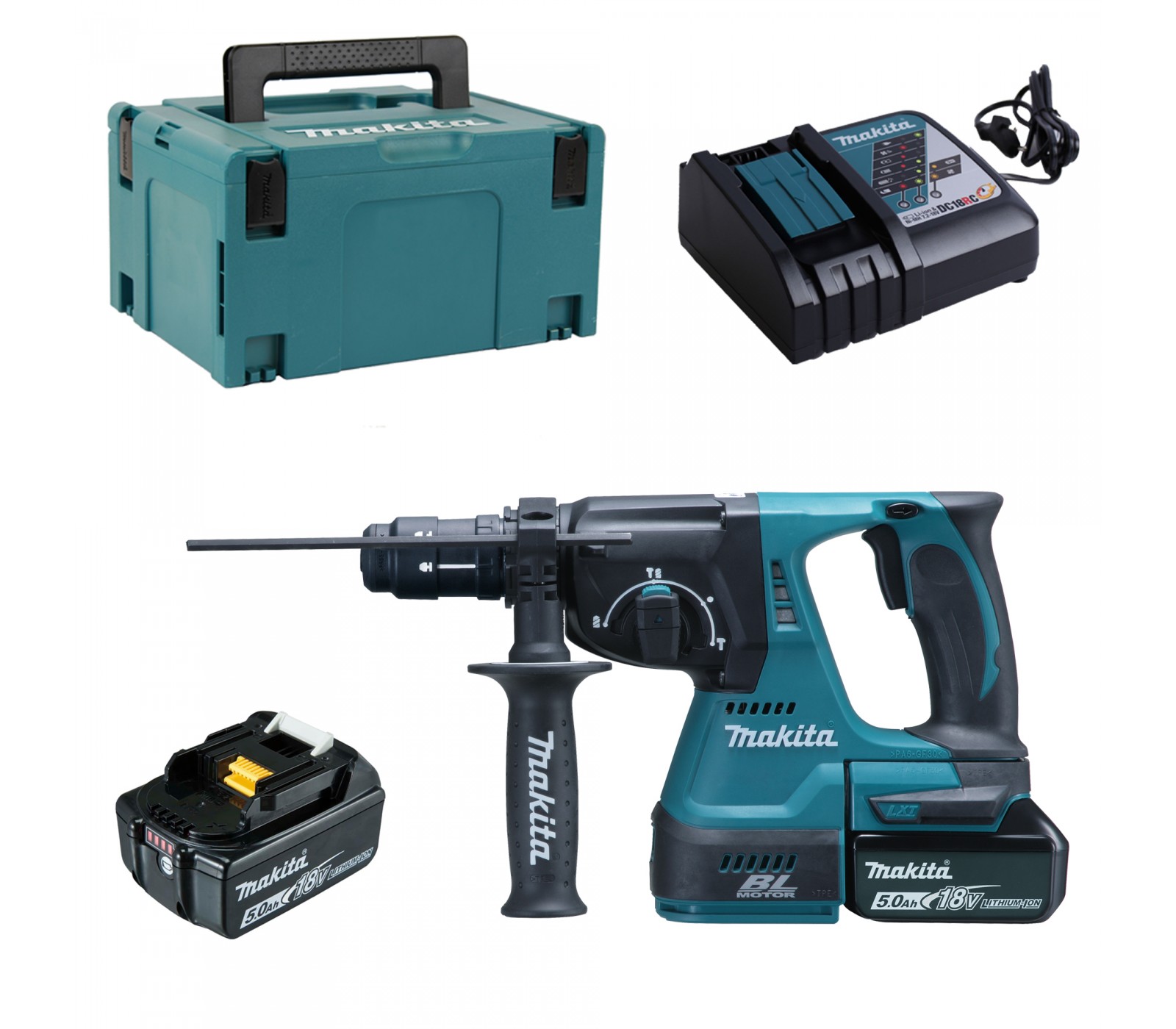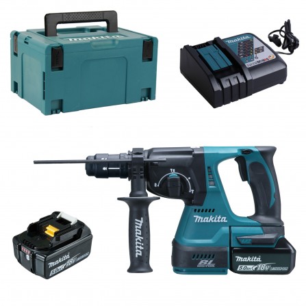 Akumuliatorinio perforatoriaus Makita DHR243RTJ rinkinys, 18 V, SDS-Plus, 2 x 5 Ah, įkroviklis + lagaminas