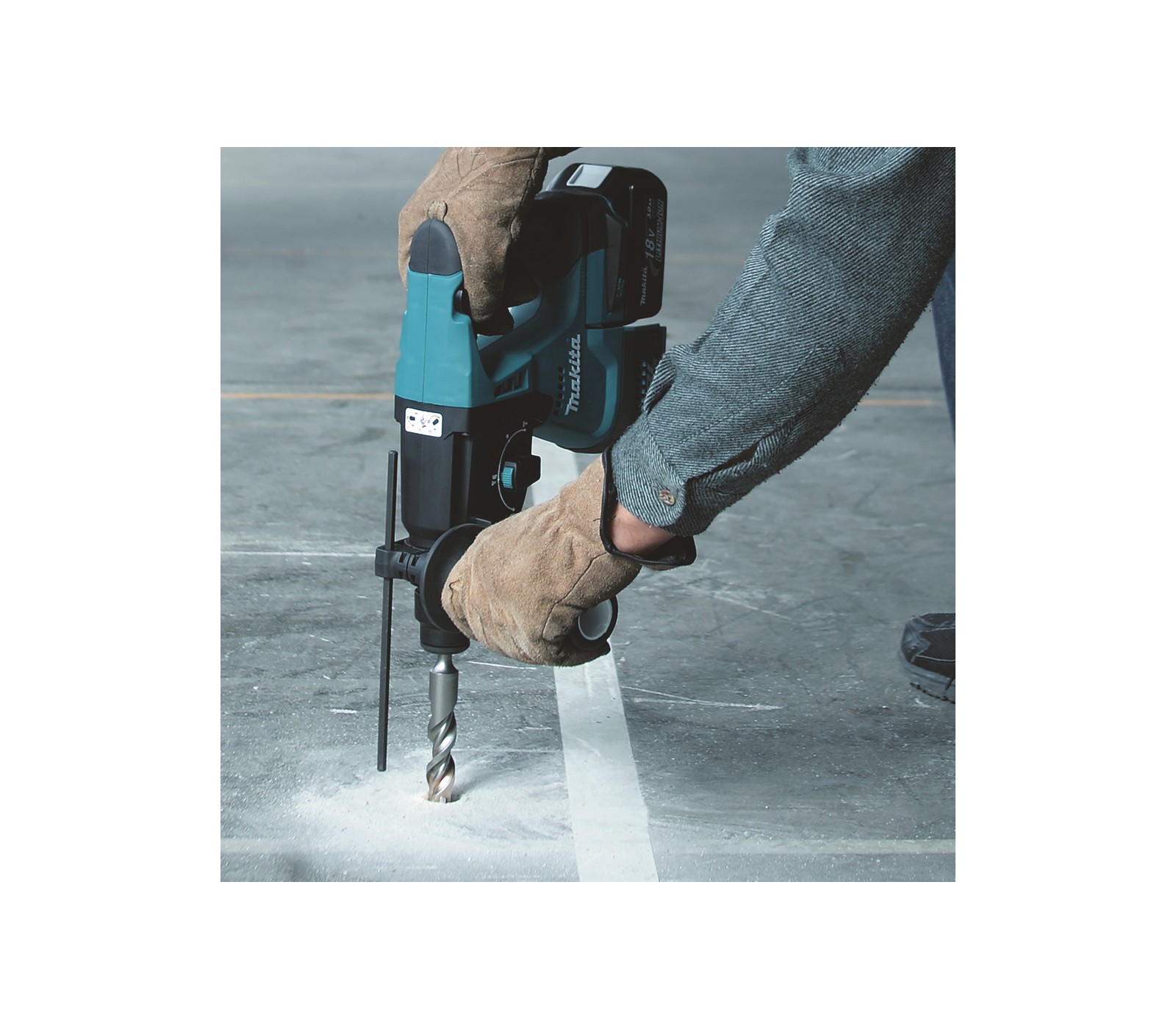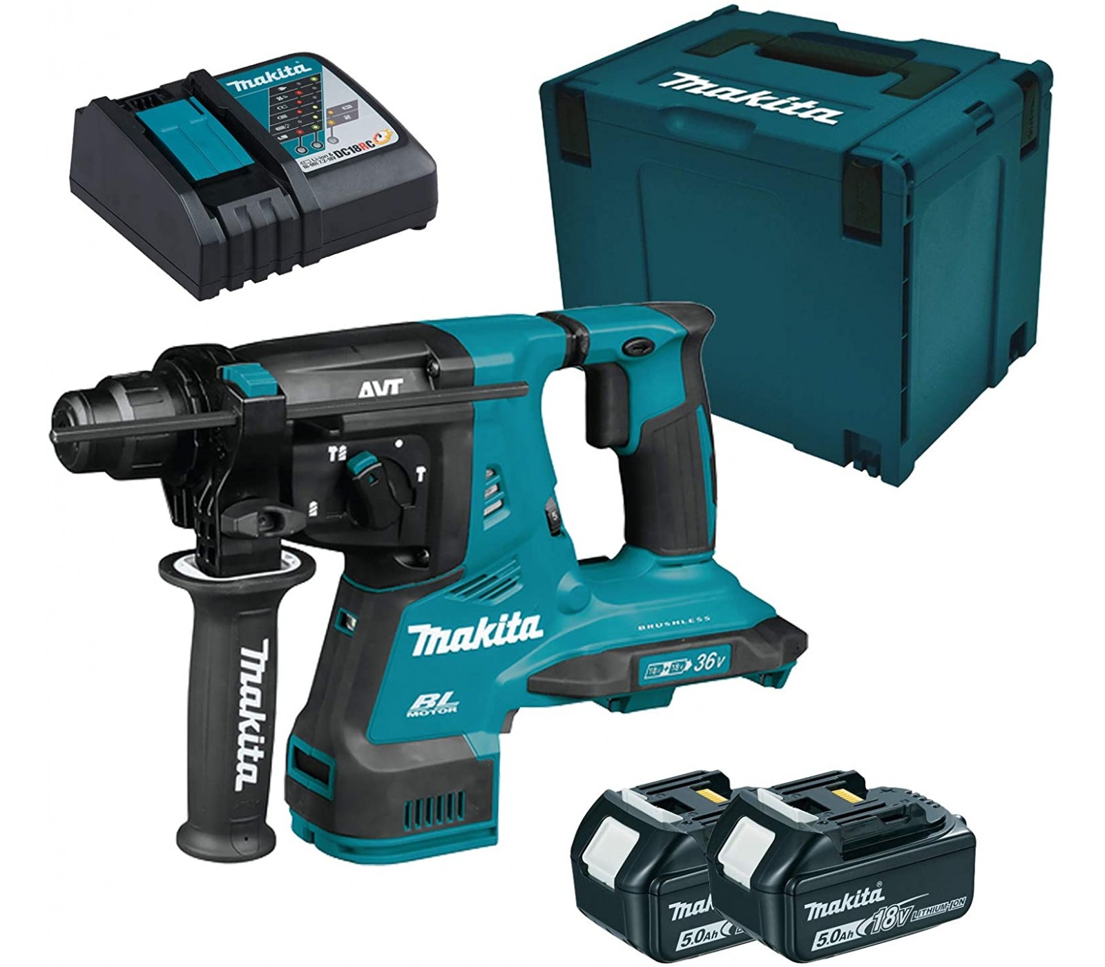 Makita DHR243RTJ 18 V akumuliatorinio perforatoriaus rinkinys su SDS-Plus griebtuvu, 2 J smūgio jėga ir 2 x 5 Ah baterijomis yra galingas, universalus ir patogus įrankis gręžimui, kalimui ir kombinuotiems darbams.