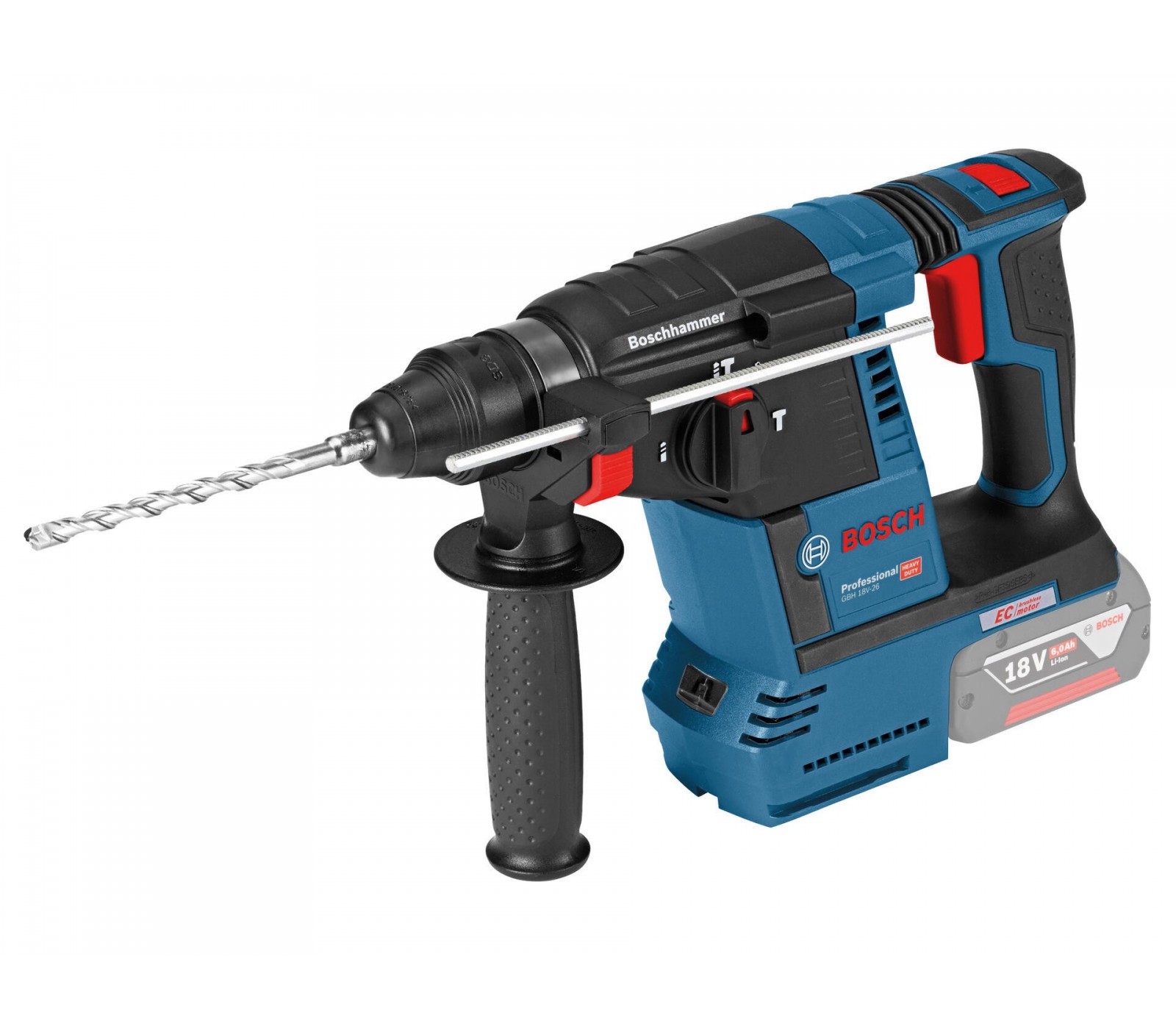 Bosch GBH 18V-26 – een professionele accuhamer met 2,6 J slagenergie en SDS-Plus systeem.