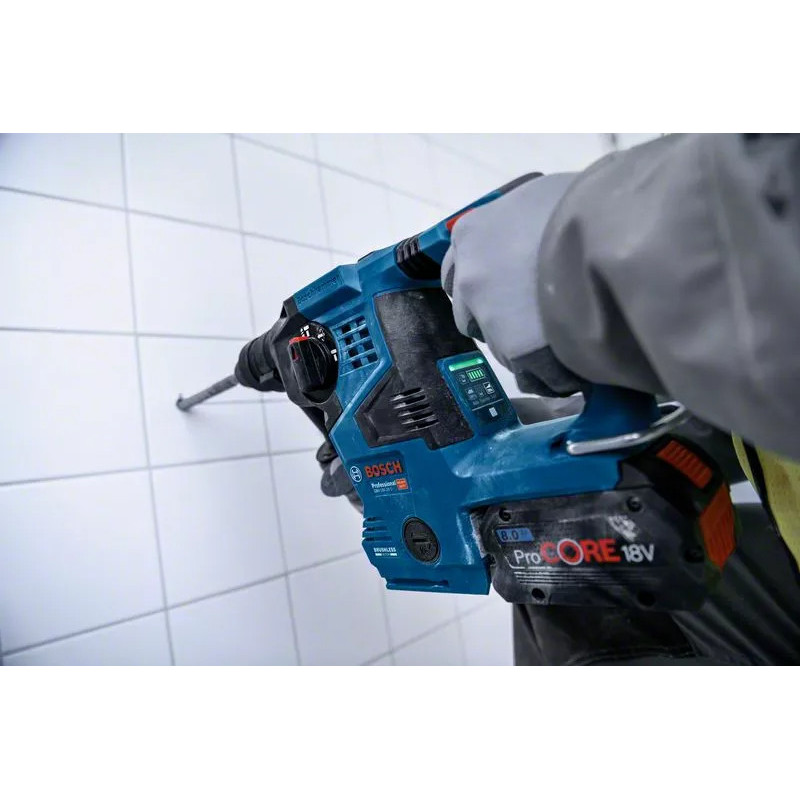 De Bosch GBH 18V-28 C Accu-Hamer is een krachtige en veelzijdige boorhamer, ideaal voor zowel professioneel als thuisgebruik. Met een gewicht van 3,3 kg en een energie van 3,3 J biedt hij een uitstekende verhouding tussen kracht en draagbaarheid.