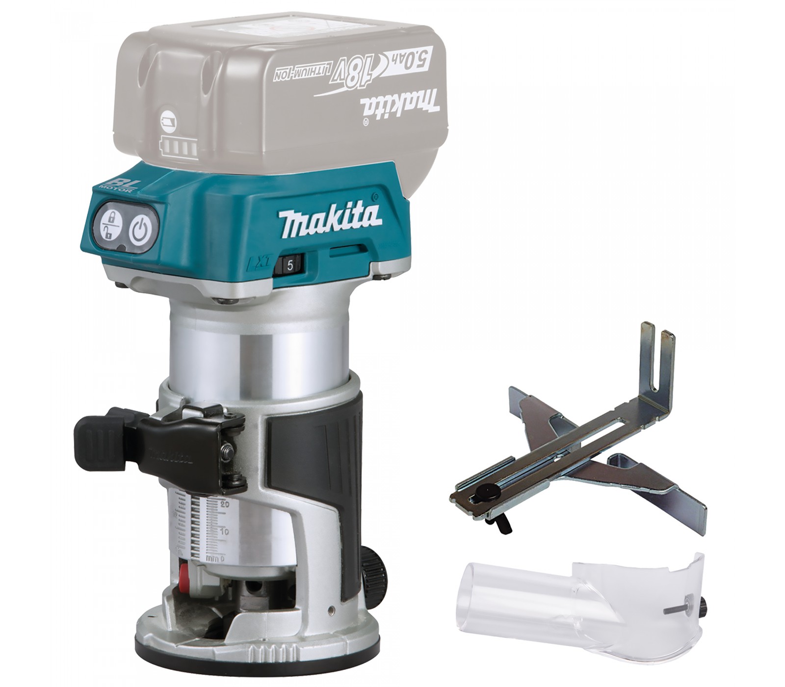 De Makita DRT50Z is een 18 V accu-frees die precisie en flexibiliteit biedt voor houtbewerking. Met variabele snelheid (10.000 tot 30.000 tpm), zachte start en ergonomisch ontwerp levert het soepele en efficiënte sneden. Uitgerust met stofzuigsysteem en diepte-instelling. Accu en oplader apart verkrijgbaar.