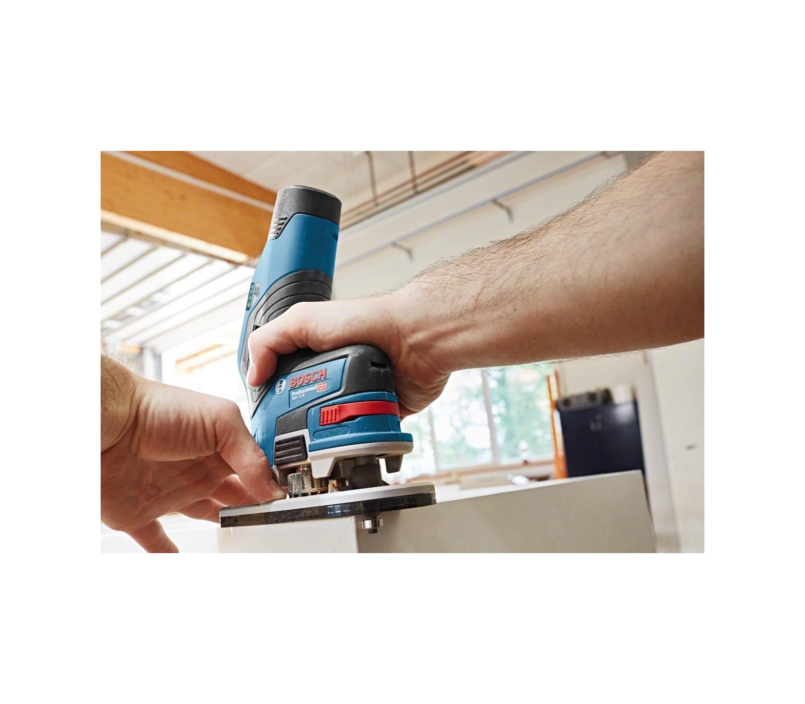 Akumuliatorinė rankinė freza Bosch GKF 12V-8, 12 V + lagaminas