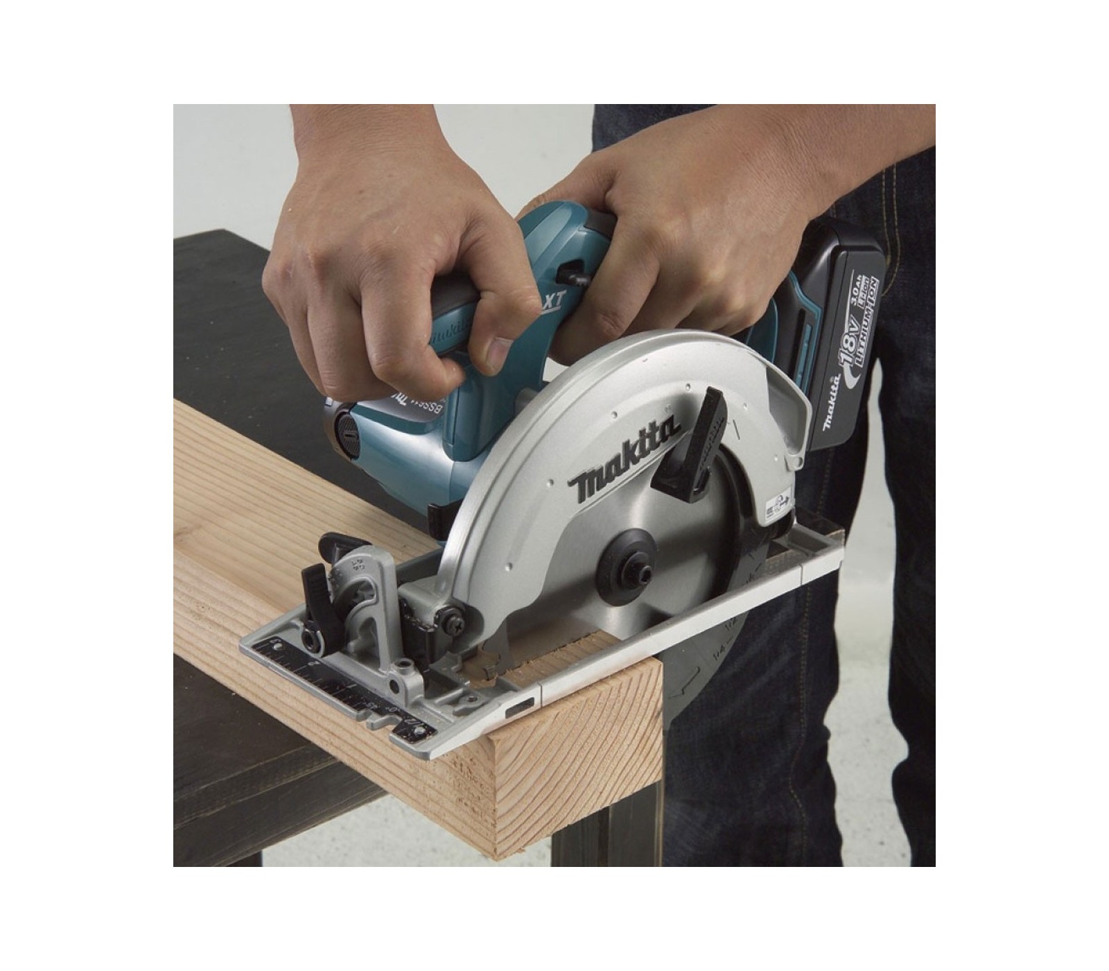 De Makita DSS610Z is een compacte 18V accu cirkelzaag met een 165 mm zaagblad, die tot 57 mm diep zaagt bij 90°. Ideaal voor hout, frames en vlonders. Met stofblazer, LED-verlichting, aluminium zool en accubescherming. Gewicht met accu: 3,0–3,4 kg. Onbelast toerental: 3700 tpm.