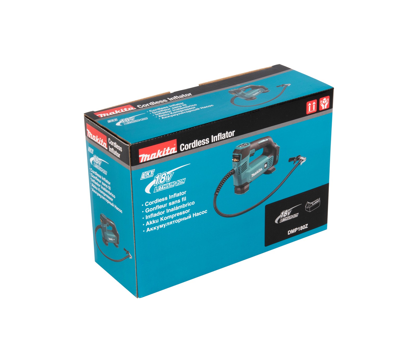 Makita DMP180Z – een compact en handig 18 V accu-luchcompressor die een druk tot 8,3 bar kan bereiken.