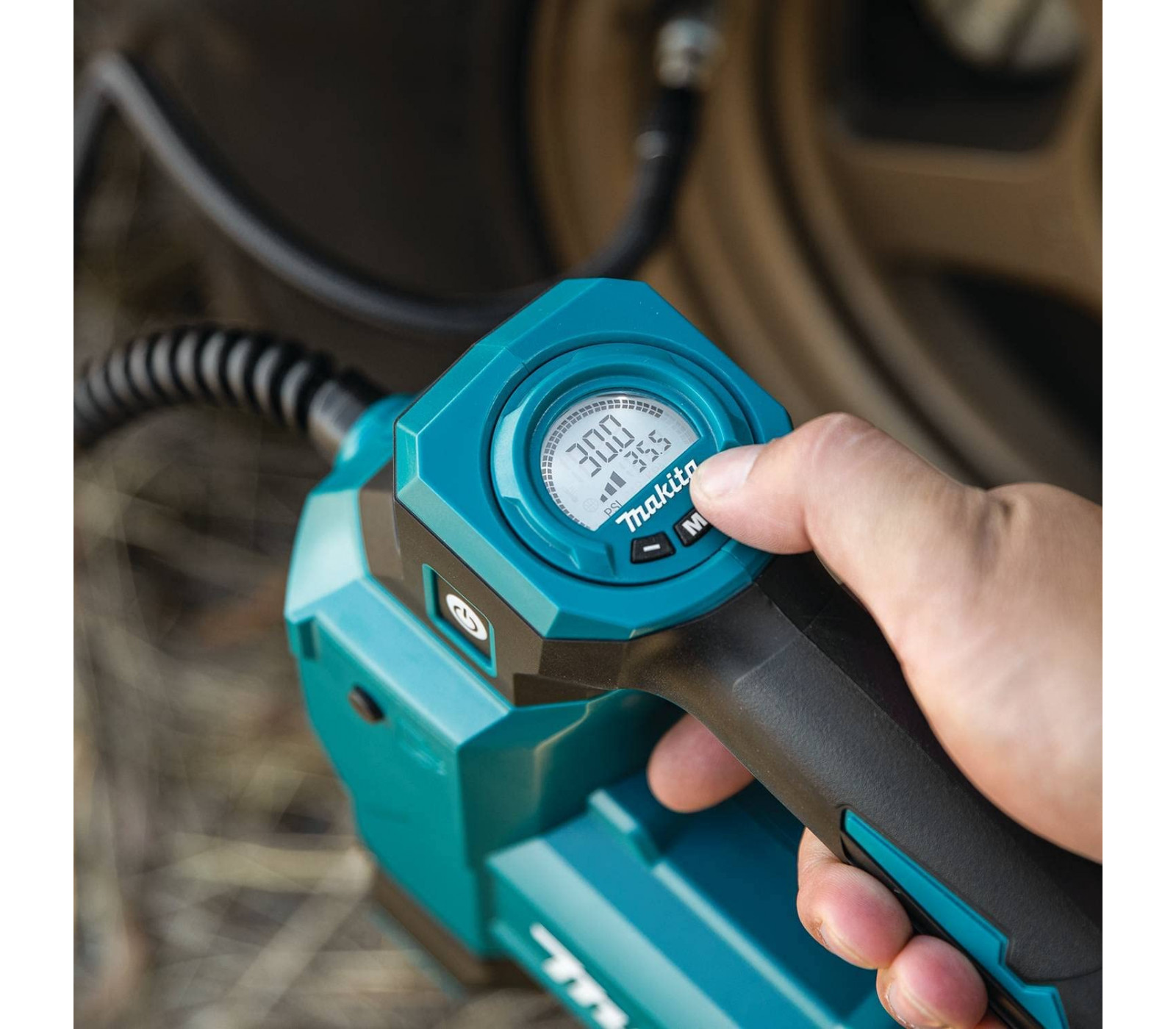 Makita DMP181Z – een krachtige en handige 18 V accu luchtcompressor, die een druk van 11,1 bar kan bereiken.