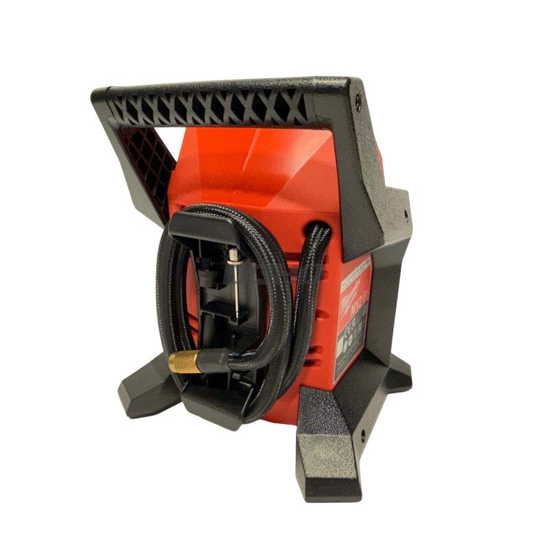 De Milwaukee M12 BI-0 is een compacte, lichte accucompressor, perfect voor auto’s, lichte trucks en gereedschap. Tot 8,27 bar / 120 PSI, met automatische uitschakeling bij gewenst drukniveau. 660 mm slang, messing Schrader-koppeling, en accessoires inbegrepen. LCD-display, accumeter, trillingsdempende poten. Werkt met alle M12™ accu’s (niet inbegrepen).