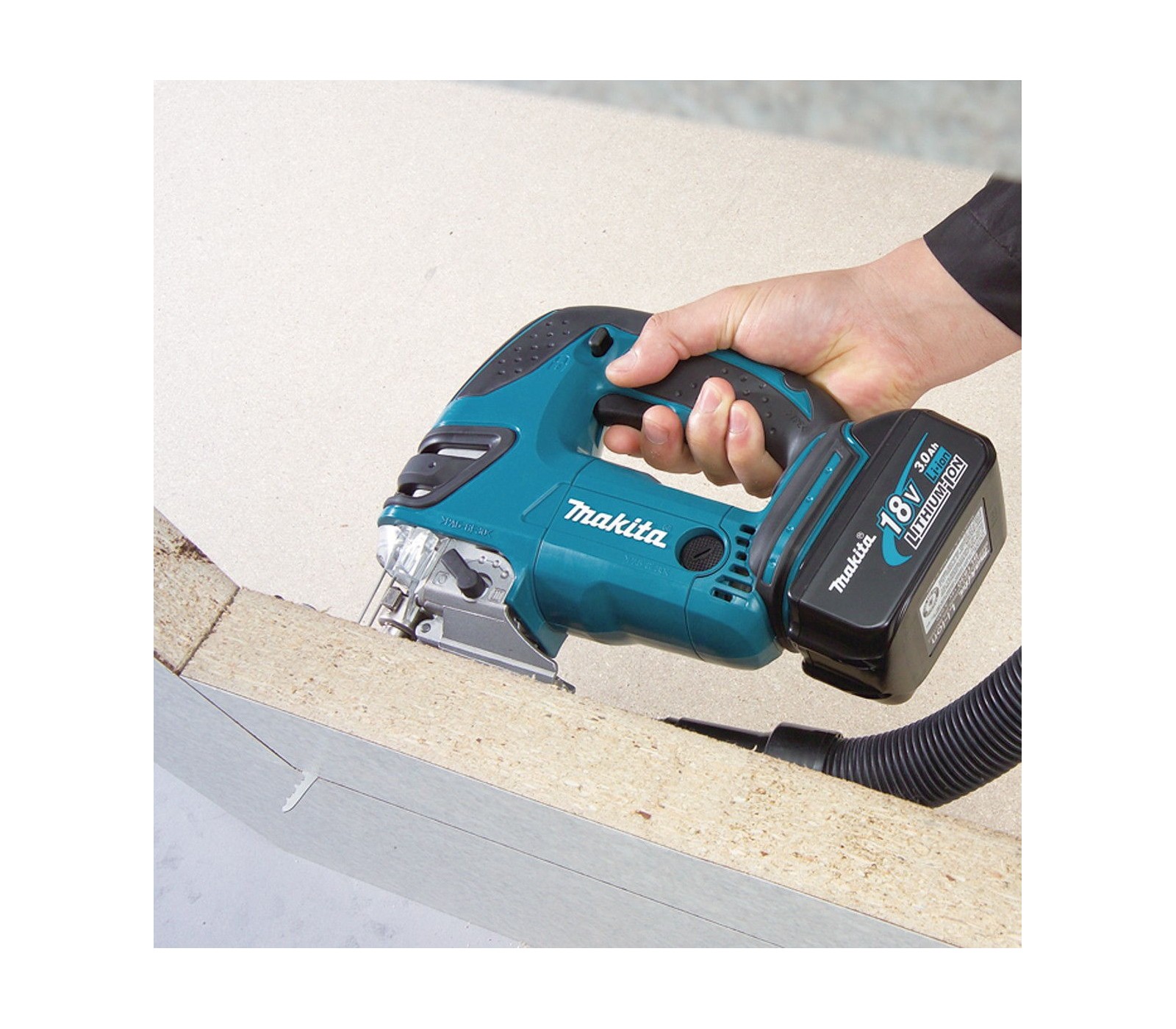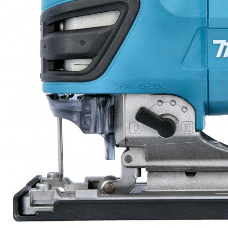 De Makita DJV180Z is een lichte en krachtige 18 V accu-decoupeerzaag voor hout, metaal en kunststof. Voorzien van gereedschapsloze zaagbladwissel, 3 pendelstanden en instelbaar toerental. Ergonomisch handvat en LED-verlichting verhogen het gebruikscomfort. Zonder accu en lader.