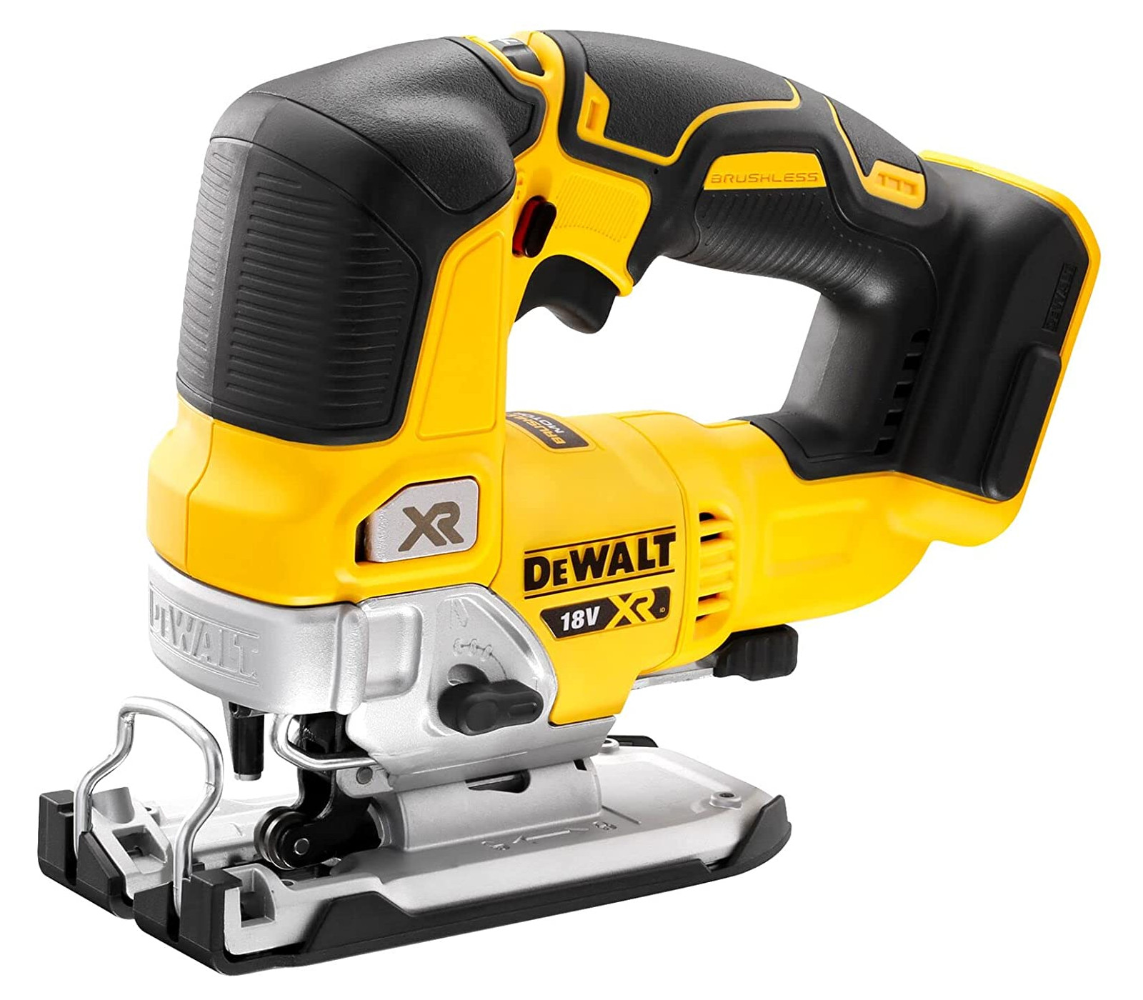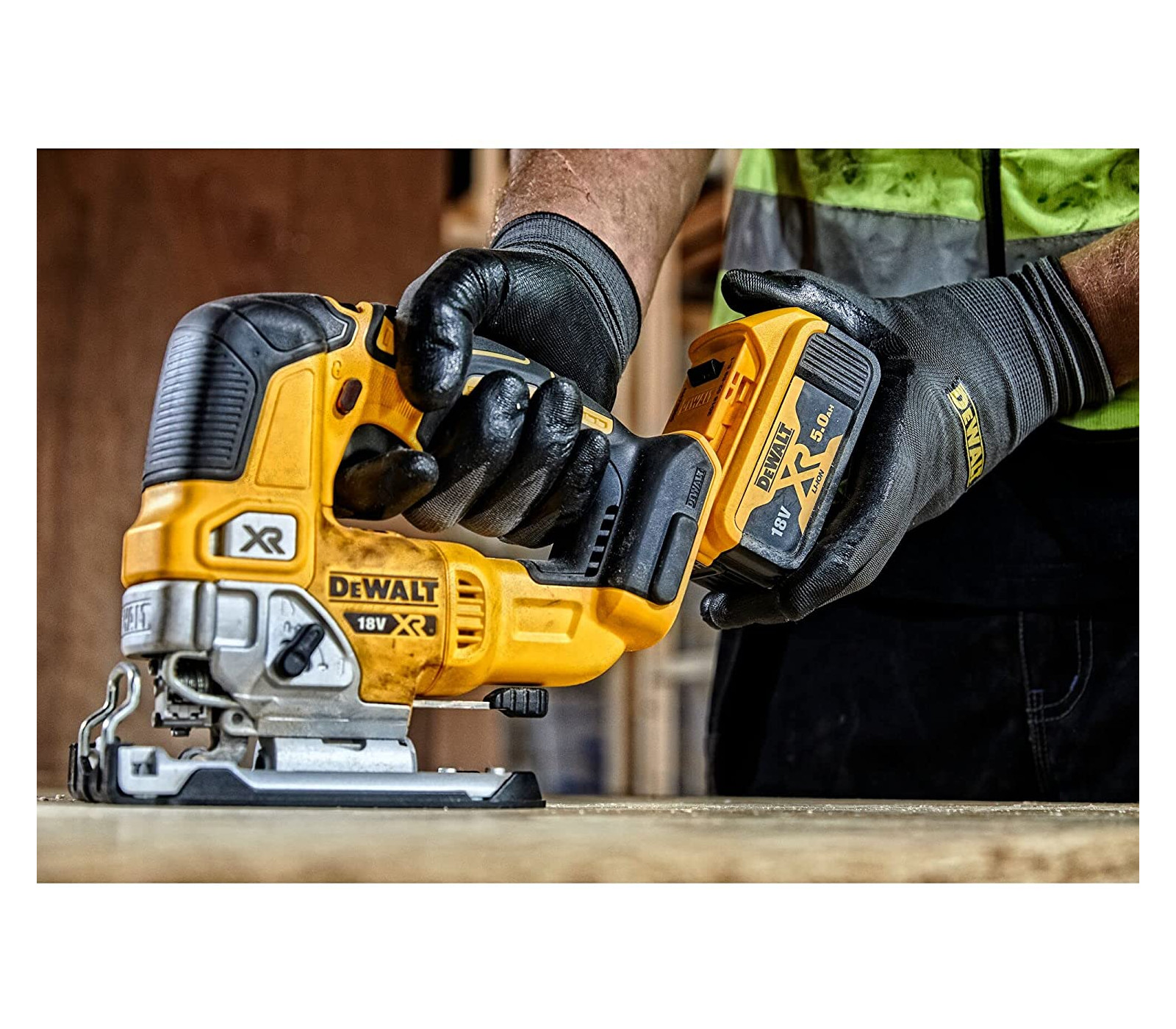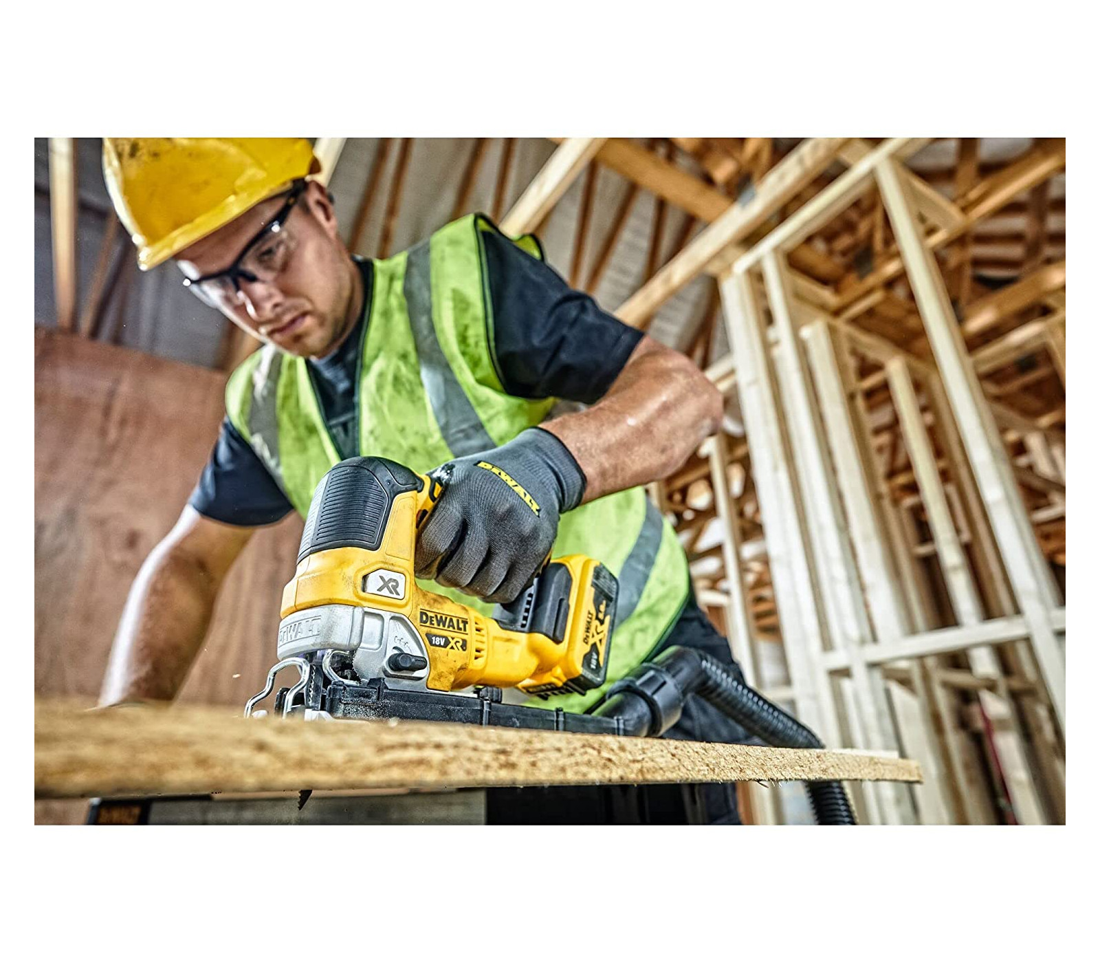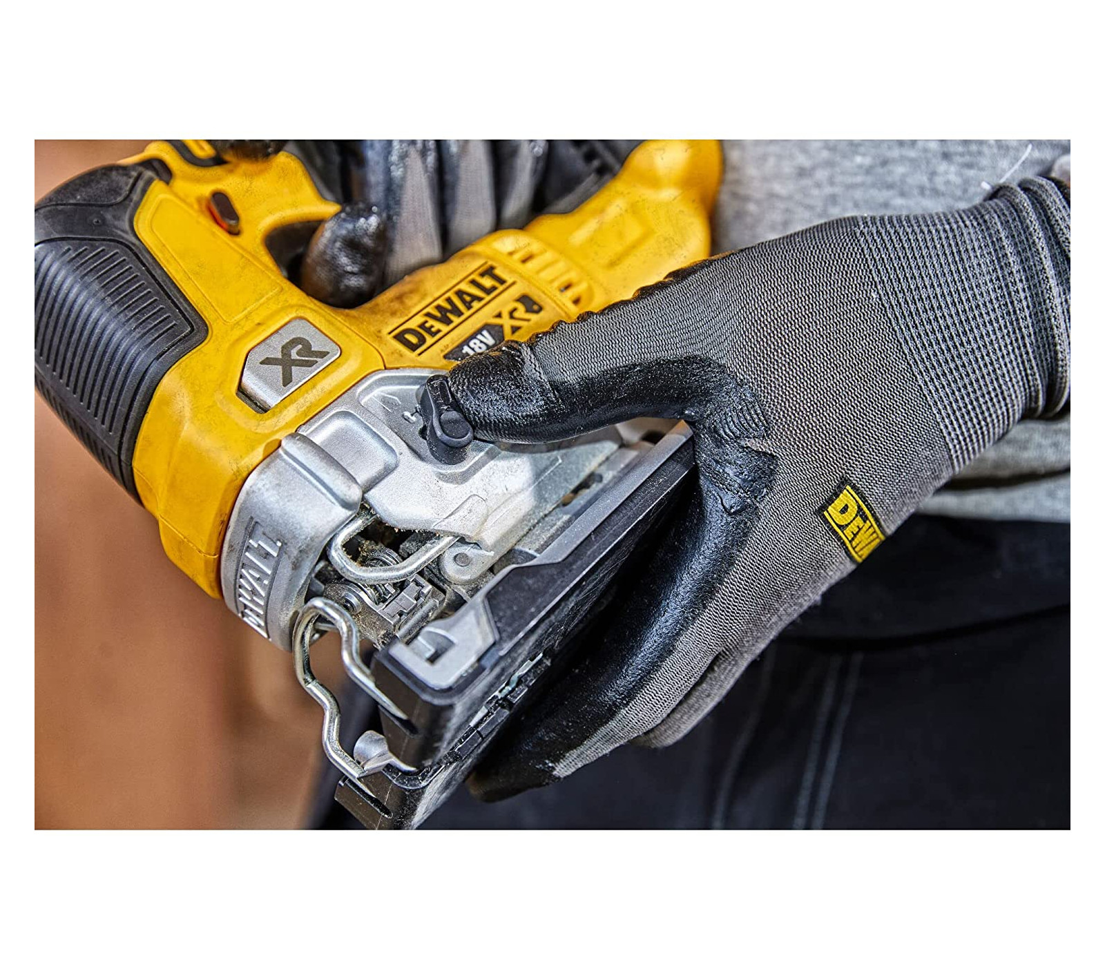 Dewalt akumuliatorinis siaurapjūklis DCS334N su 18V XR bešepečio variklio technologija yra tikslus ir efektyvus įrankis pjovimo darbams.