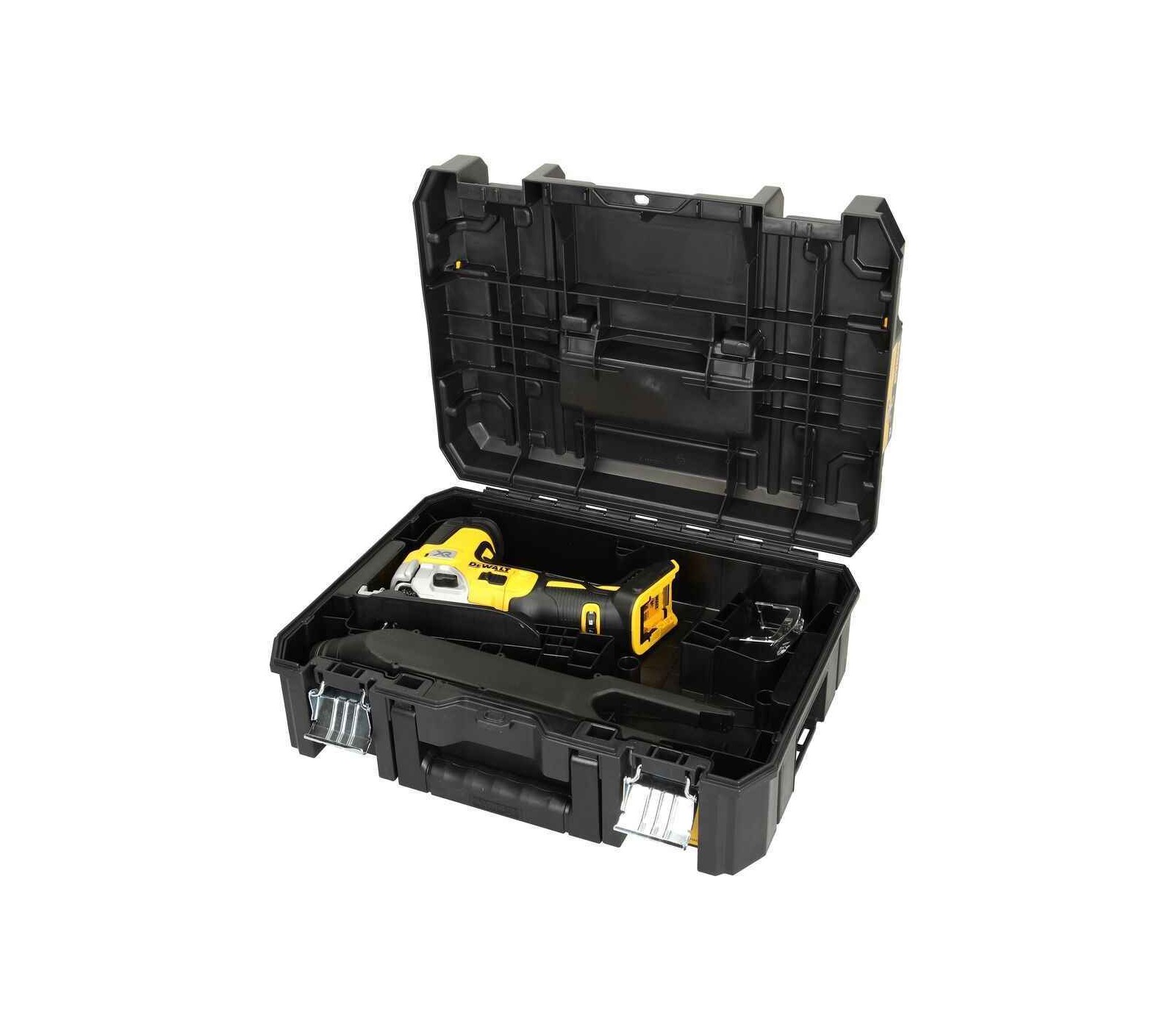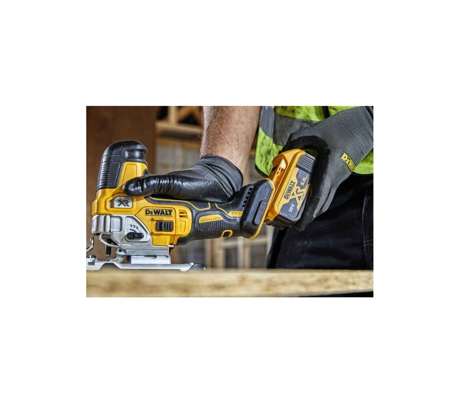 Dewalt akumuliatorinis siaurapjūklis DCS335NT su 18V XR bešepečio variklio technologija yra tikslus ir efektyvus pjovimo įrankis.