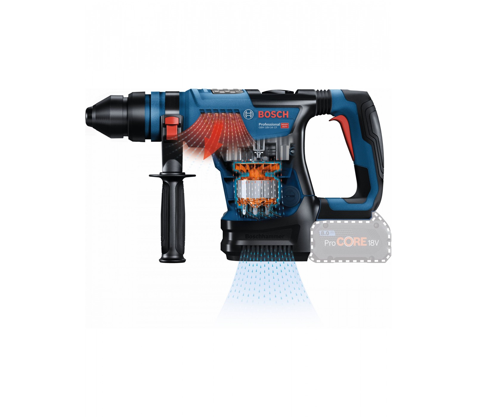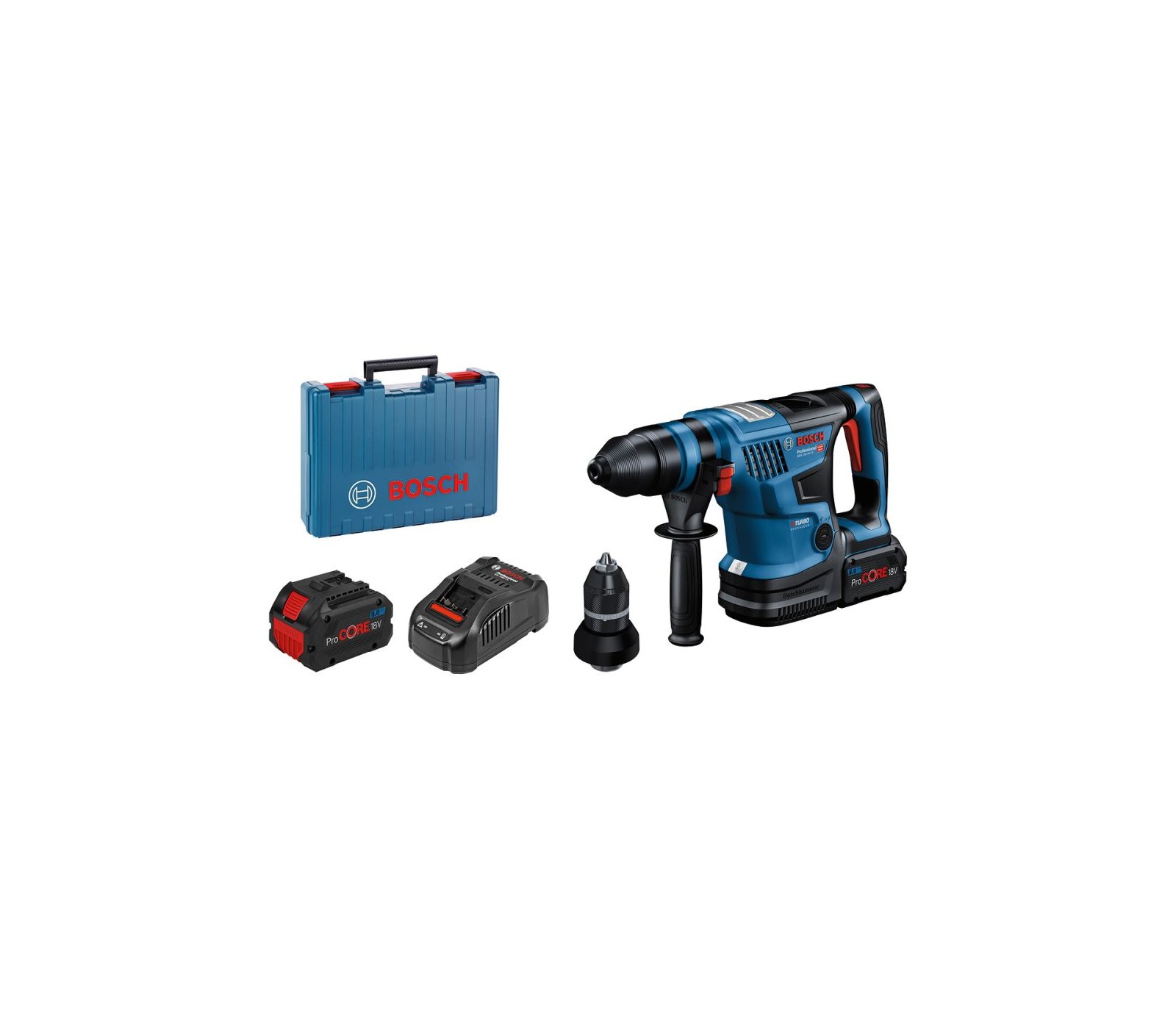 Akumuliatorinio perforatoriaus Bosch GBH 18V-34 CF Biturbo rinkinys, SDS plus, 5,8 J, 18 V, 2 x 8 Ah, įkroviklis + lagaminas