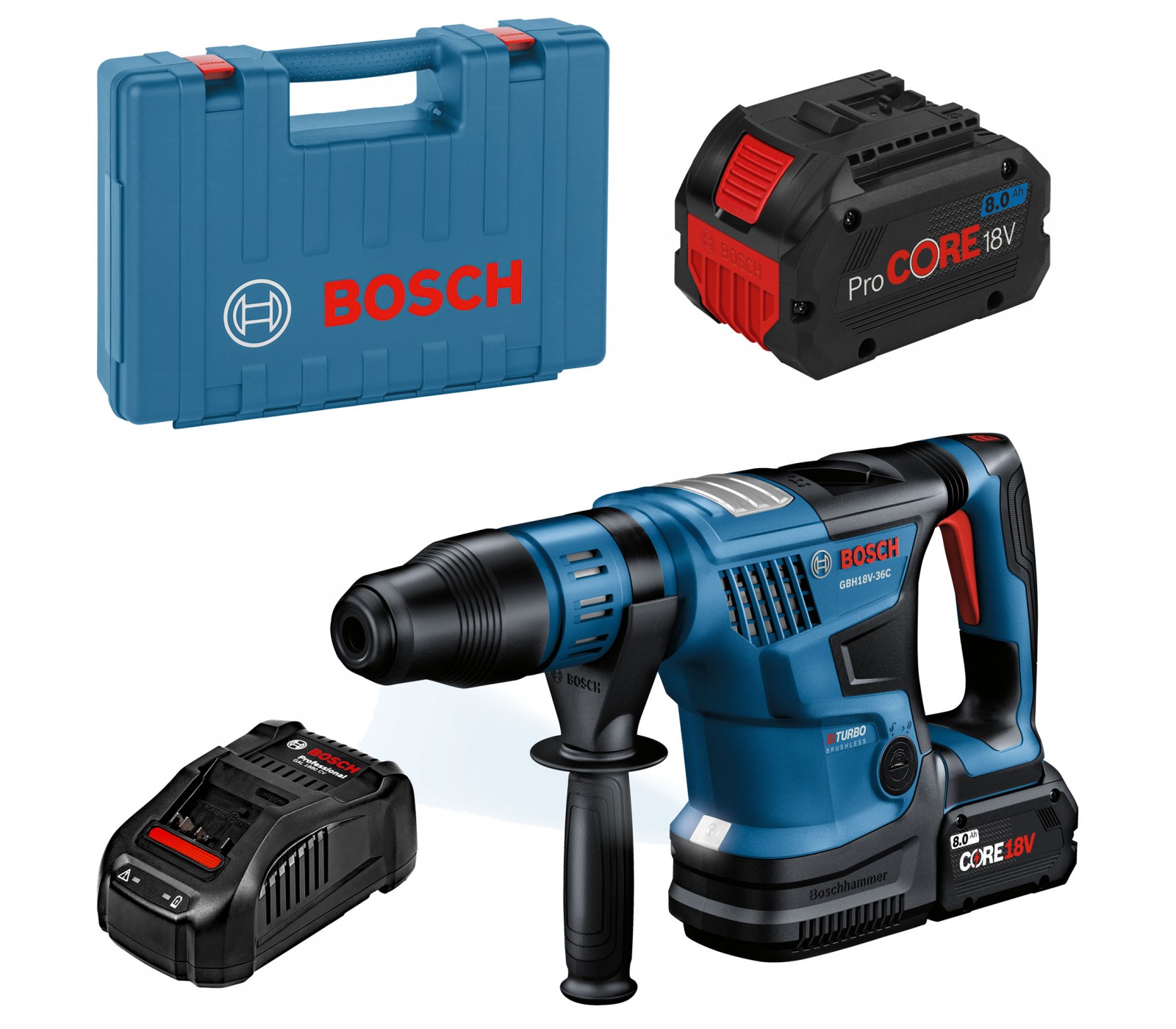 Akumuliatorinio perforatoriaus Bosch GBH 18V-36 C Biturbo rinkinys, SDS max, 18 V, 2 x 8 Ah, įkroviklis, modulis + lagaminas