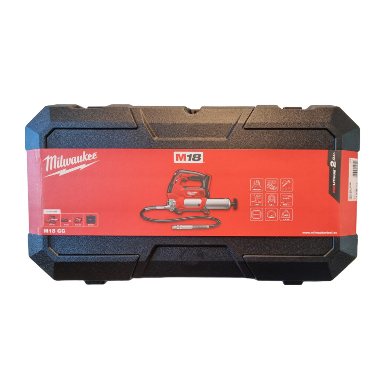 Akumuliatorinio tepalo pistoleto Milwaukee M18 GG-201C rinkinys, 18 V, 1 x 2 Ah, įkroviklis + lagaminas