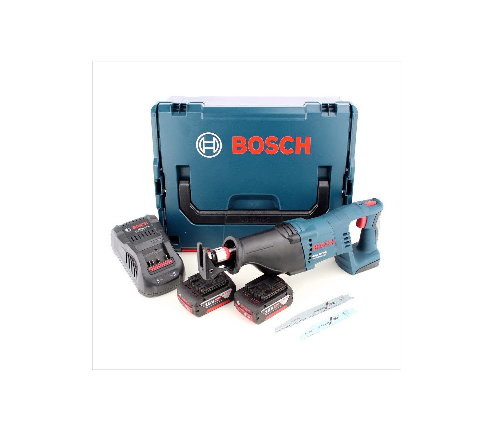 Akumuliatorinio tiesinio pjūklo Bosch GSA 18 V-LI (060164J00B) rinkinys, 18 V, 2 x 5 Ah, įkroviklis + lagaminas