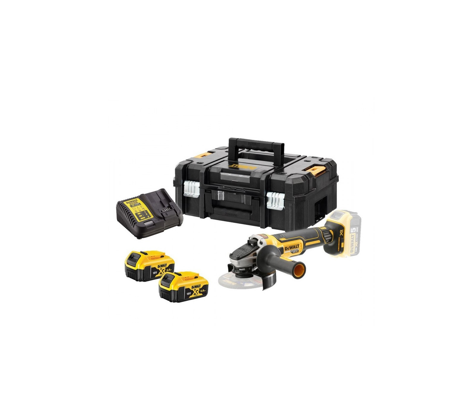 Dewalt akumuliatorinio kampinio šlifuoklio rinkinys DCG405P2, 125 mm, 18 V, 2 x 5 Ah, įkroviklis + lagaminas