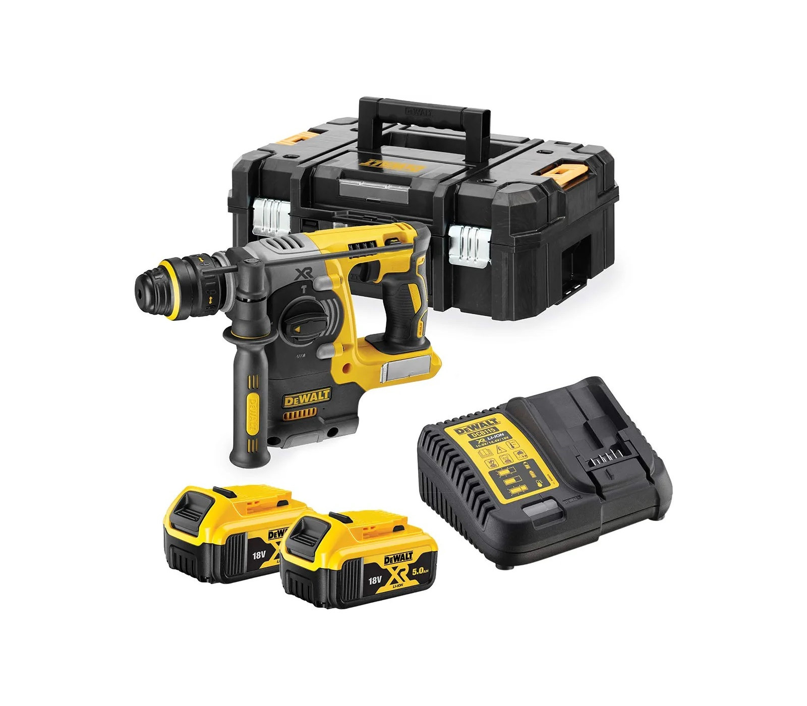 Dewalt akumuliatorinio perforatoriaus rinkinys DCH274P2T , 2,1 J, 18 V, 2 x 5 Ah, įkroviklis + lagaminas
