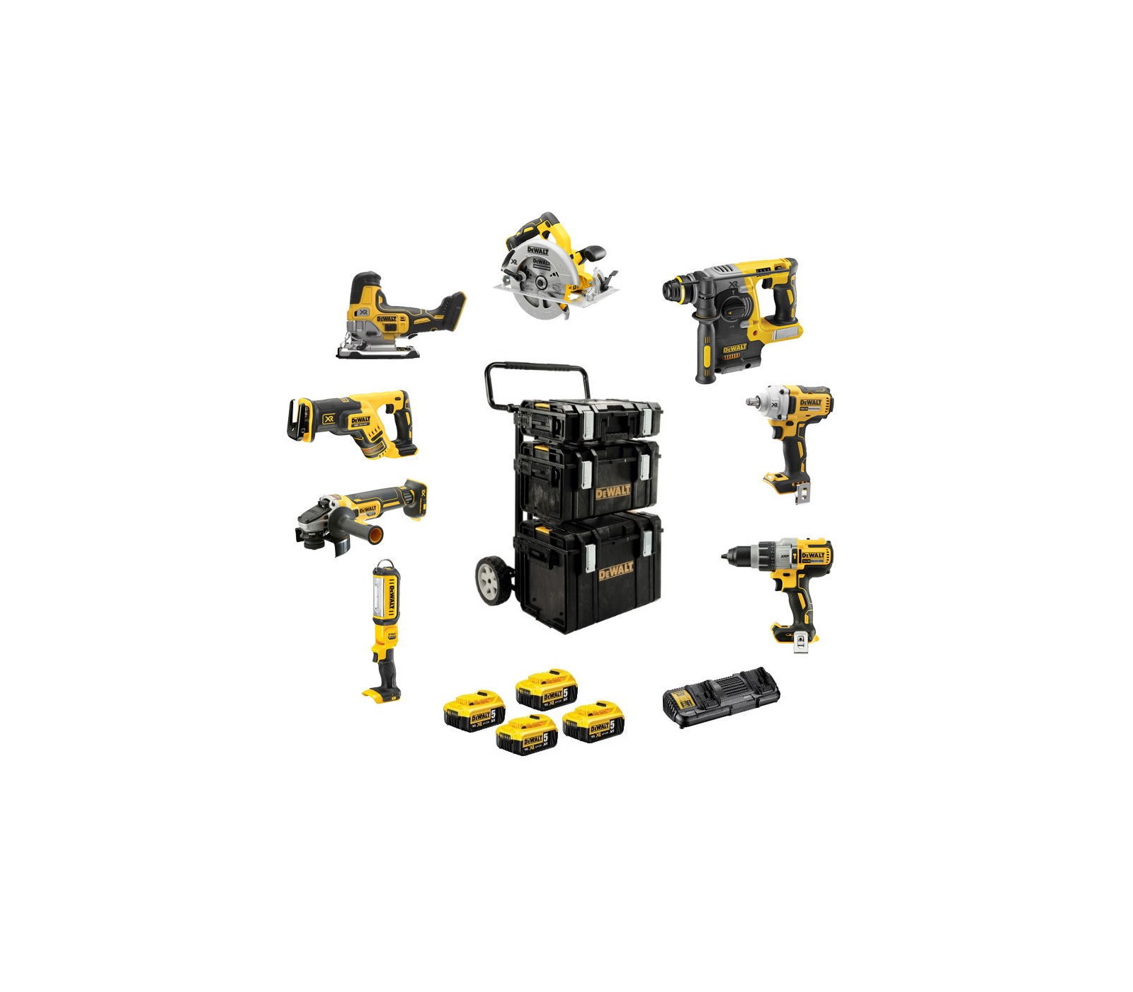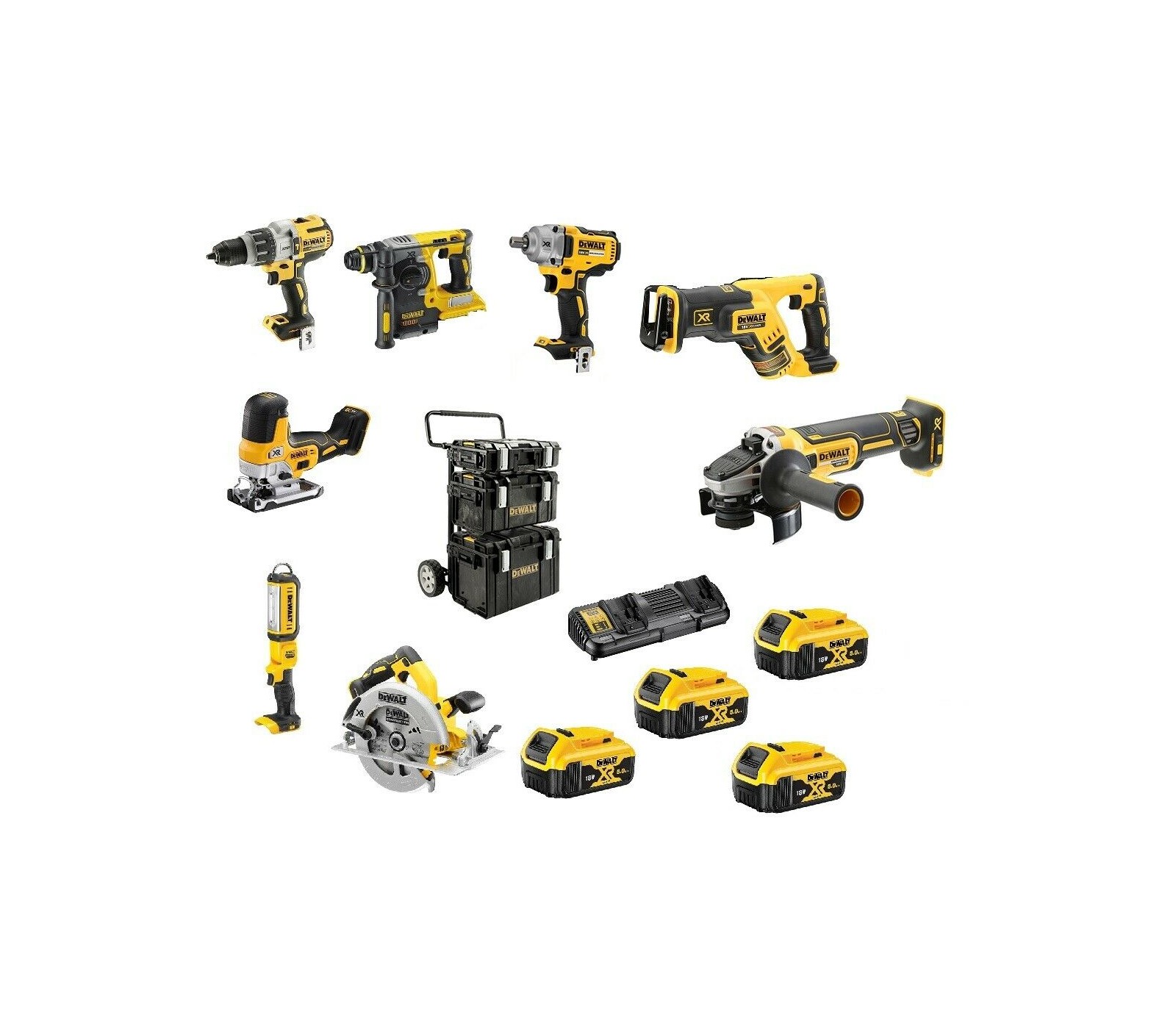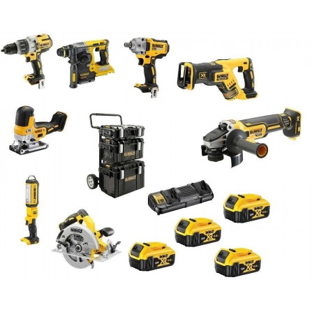 Dewalt akumuliatorinių įrankių rinkinys (DCK856P4-QW), 18 V, 4 x 5 Ah, dvigubas įkroviklis, 3 lagaminai + vežimėlis