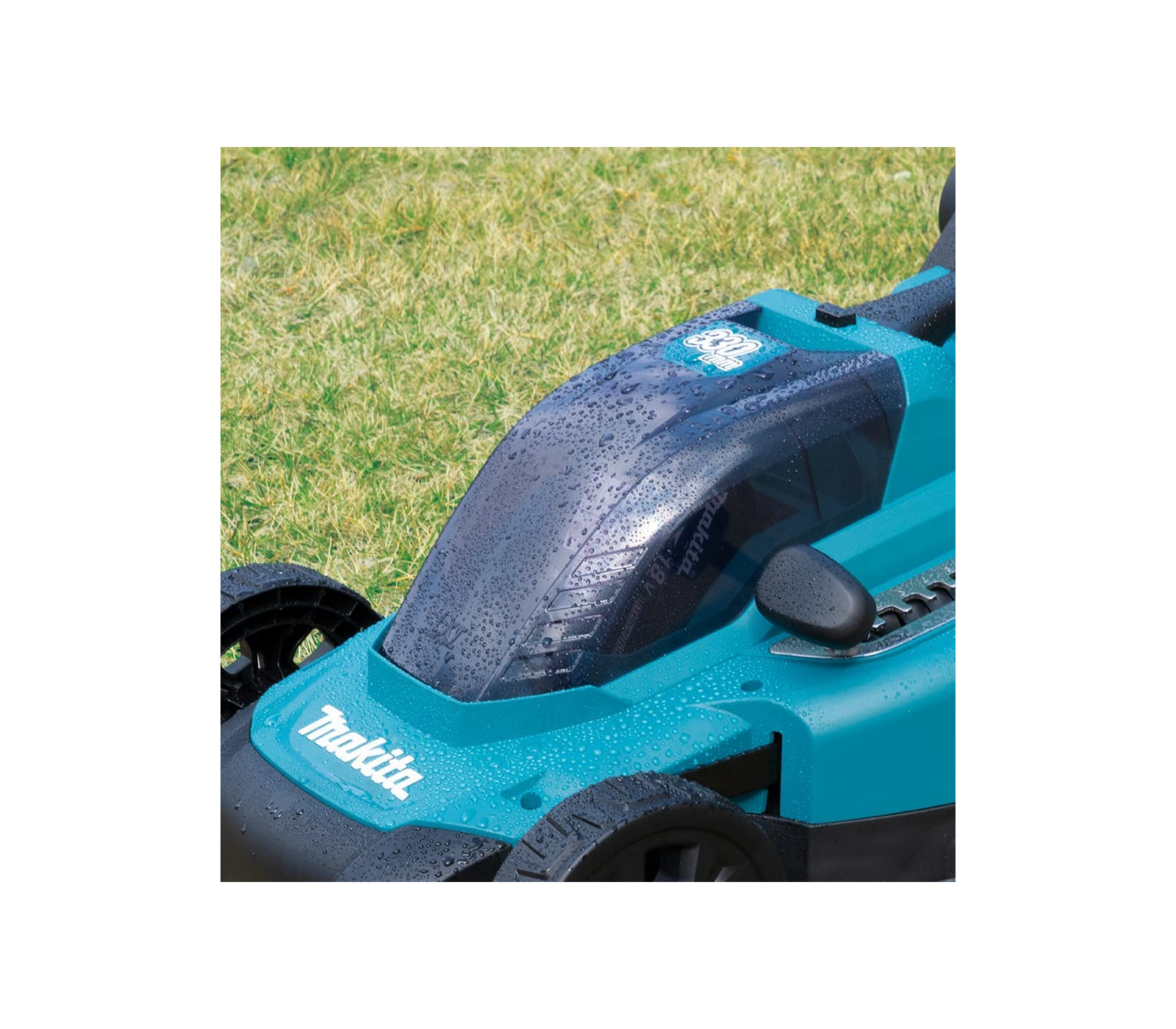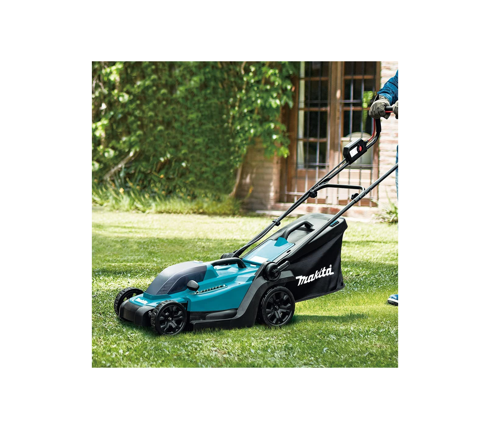 Makita DLM330Z – een lichte en wendbare 18 V accupomp, ontworpen voor kleine tuinen en smalle ruimtes.