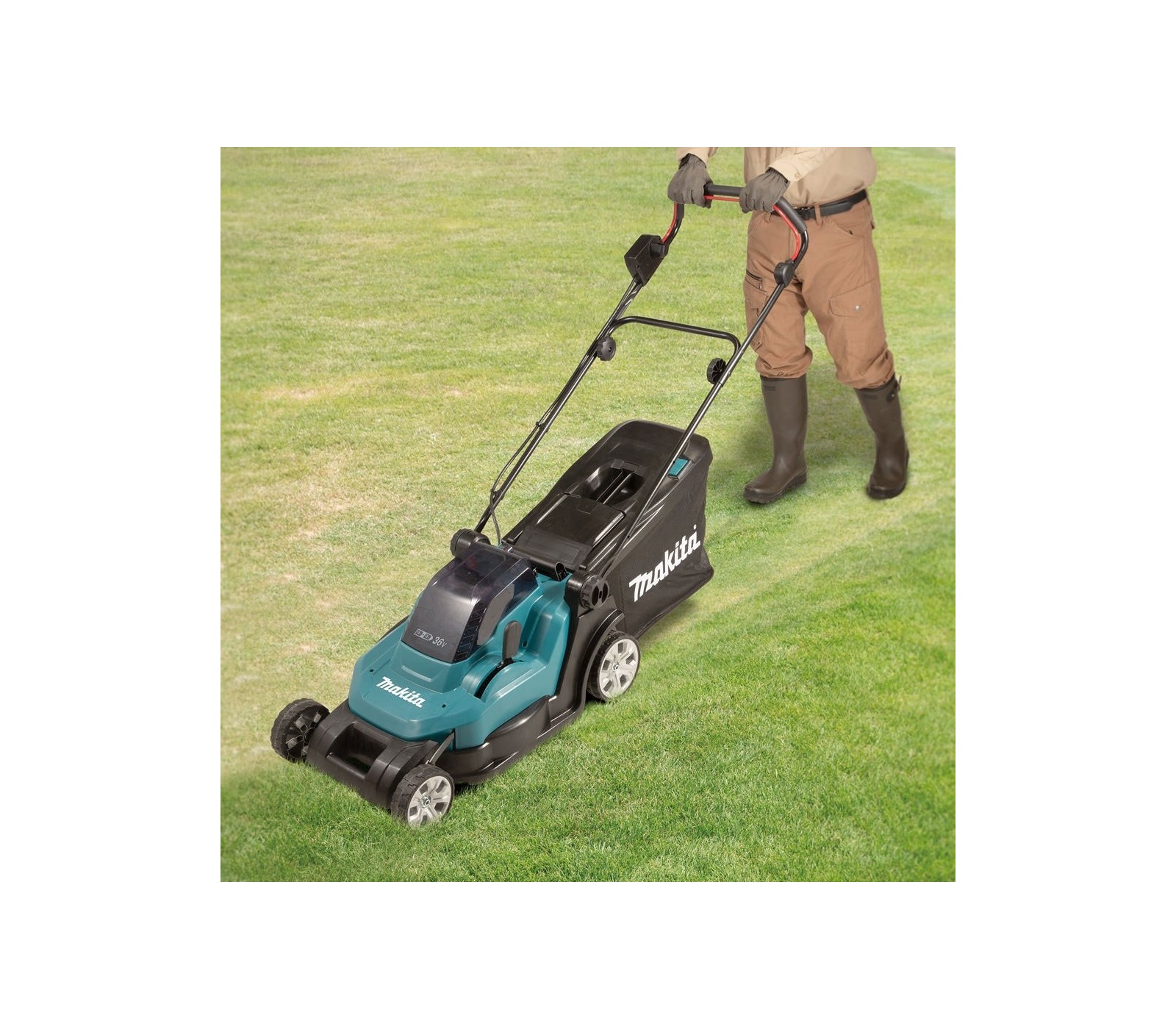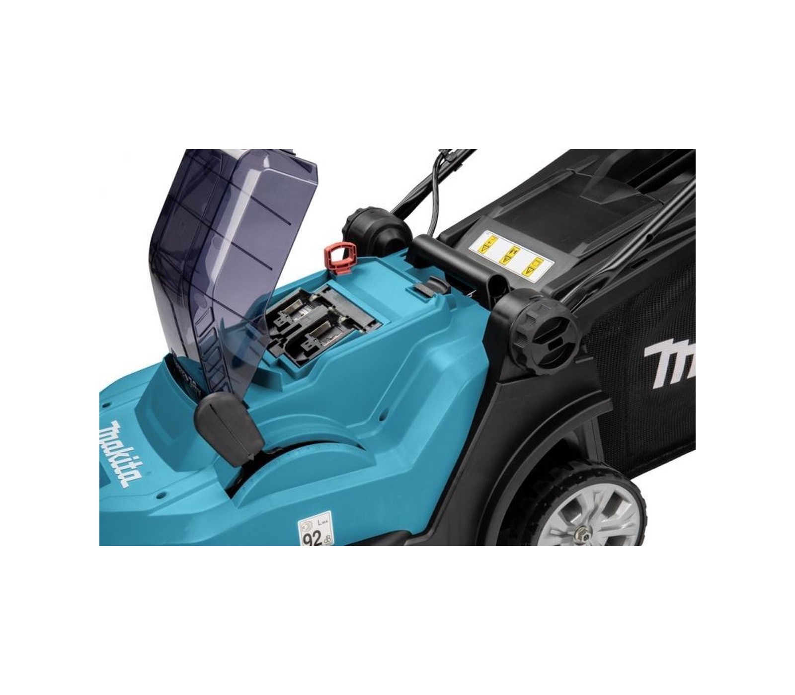 De Makita DLM432Z is een 36 V (2 x 18 V) accu grasmaaier met een snijbreedte van 43 cm en een 50 l opvangbak. Deze grasmaaier is uitgerust met grote wielen, een met één hendel verstelbare hoogte en XPT-bescherming tegen stof en vocht, waardoor hij handig, stil en efficiënt is. Geschikt voor gazons tot 950 m². Accu's en oplader zijn niet inbegrepen.