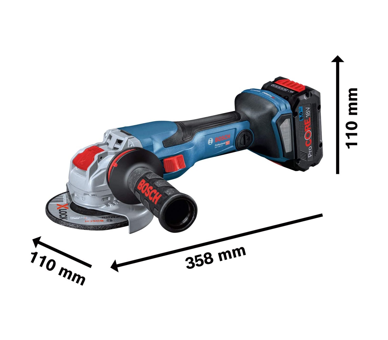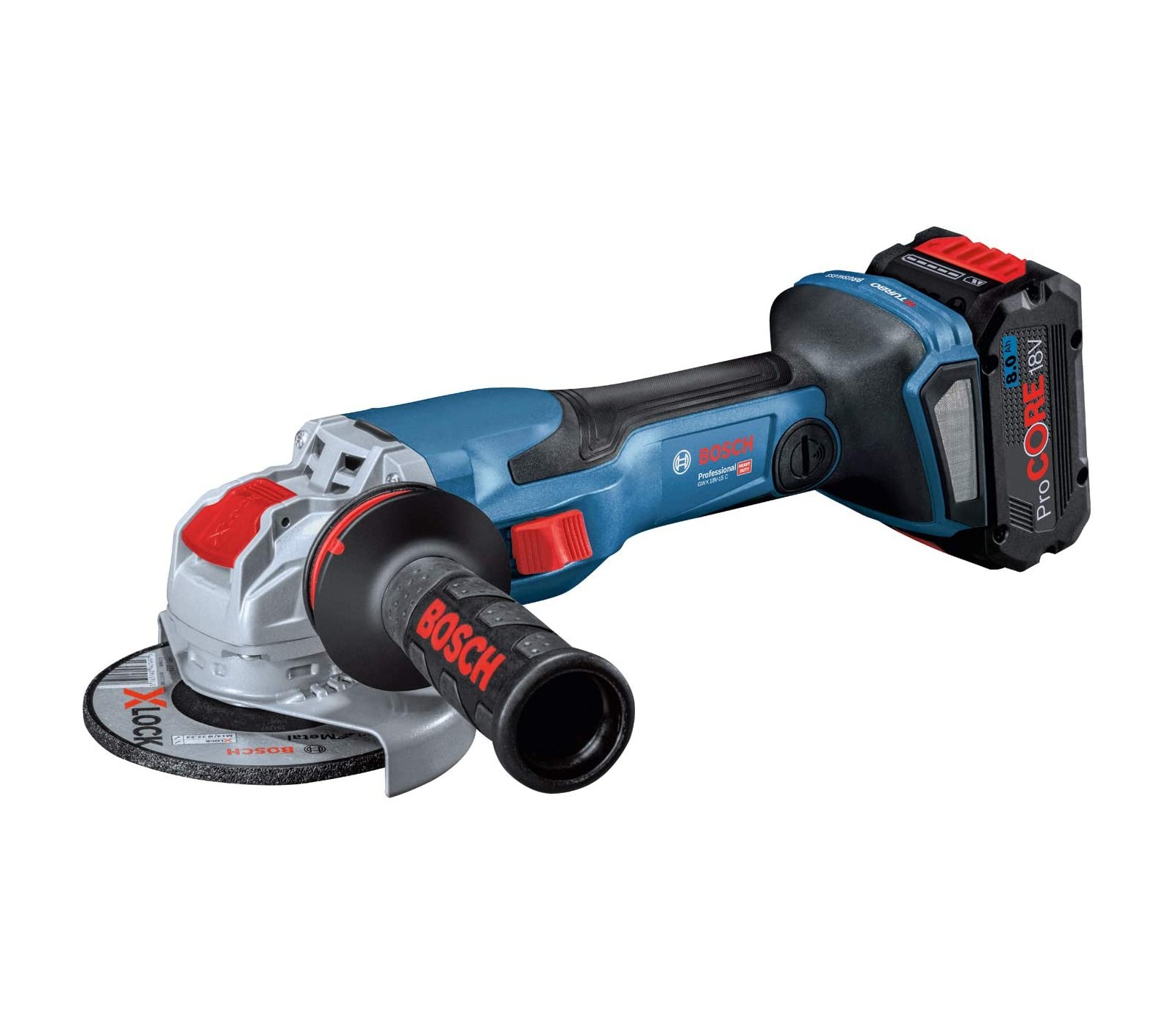 Akumuliatorinis kampinis šlifuoklis Bosch BITURBO X-LOCK GWX 18V-15 C (06019H6400), 18 V, 125 mm + lagaminas