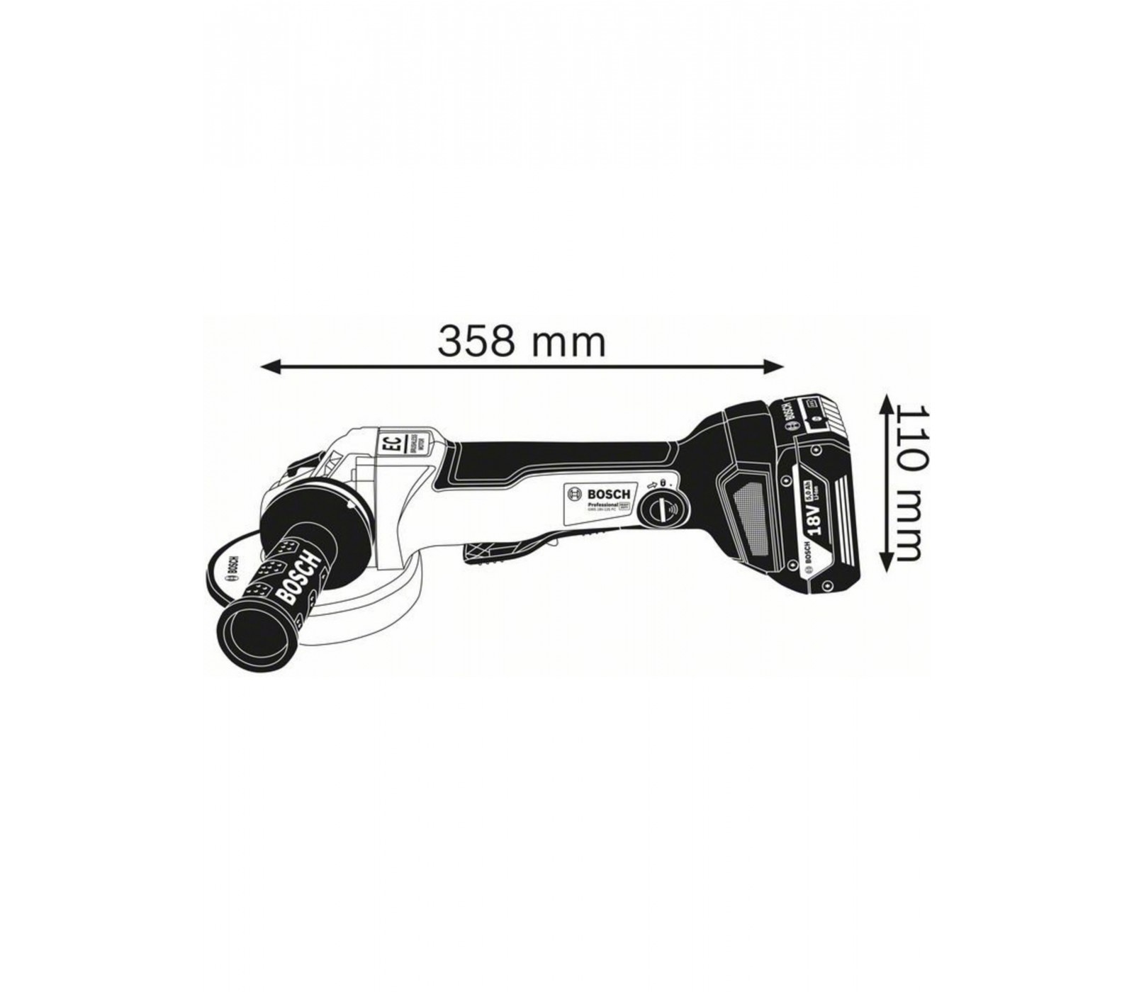 Akumuliatorinis kampinis šlifuoklis Bosch GWS 18V-10 PC (06019G3E0A), 18 V, 125 mm