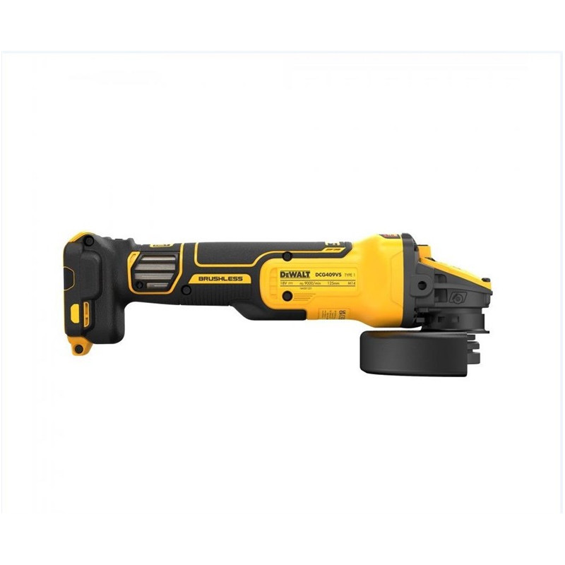 Dewalt akumuliatorinis kampinis šlifuoklis DCG409VSN-XJ su 18V XR bešepečio variklio technologija, reguliuojamu greičiu ir 125 mm disku yra idealus sprendimas tikslumui reikalaujantiems pjovimo ir šlifavimo darbams.