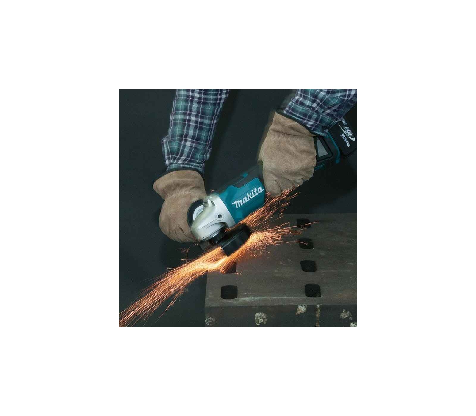 De Makita DGA506Z Accu Haakse Schuurmachine (18 V, 125 mm) is het eerste model met automatische snelheidsregeling, die optimale prestaties voor elke taak garandeert. De borstelloze motor levert meer kracht en is energiezuiniger. De elektronische overbelastingsbeveiliging en elektronische rem zorgen voor zowel prestaties als veiligheid. De Automatische Koppelsturing (ADT) past de snelheid van de motor automatisch aan op basis van de belasting. De 3-traps LED-indicator toont de batterijstatus, oververhitting of overbelasting. Met een trillingsniveau van slechts 2,5 m/s² is het werken met het gereedschap comfortabel. Het gereedschap weegt slechts 2,3–2,6 kg met batterij.