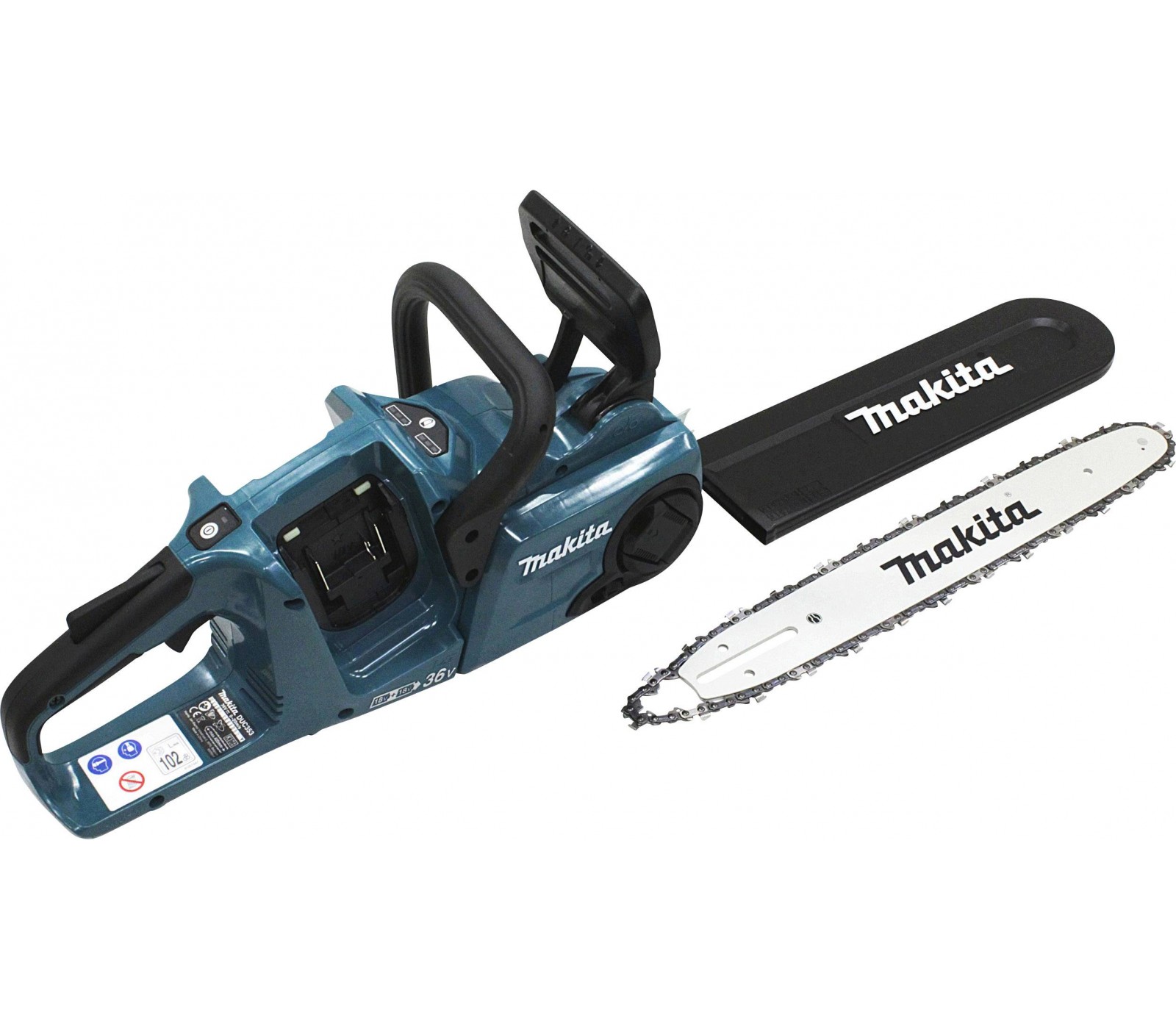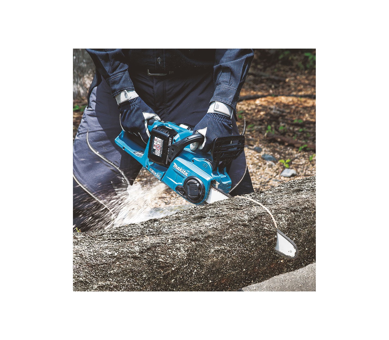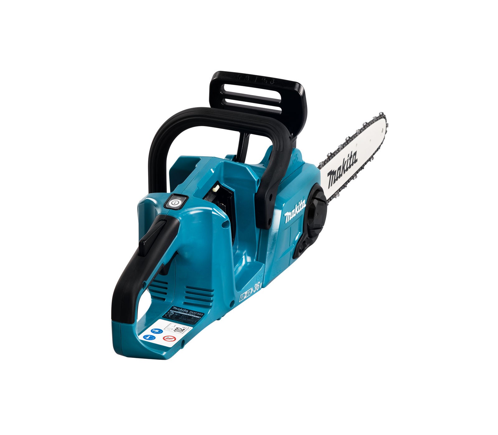 Makita DUC353Z – galingas 36 V akumuliatorinis grandininis pjūklas, naudojantis du 18 V LXT akumuliatorius.