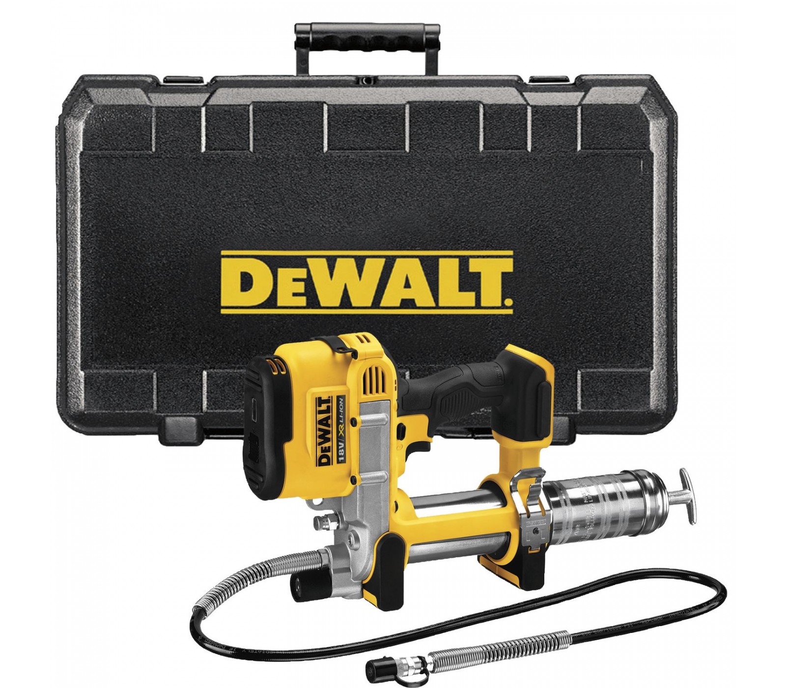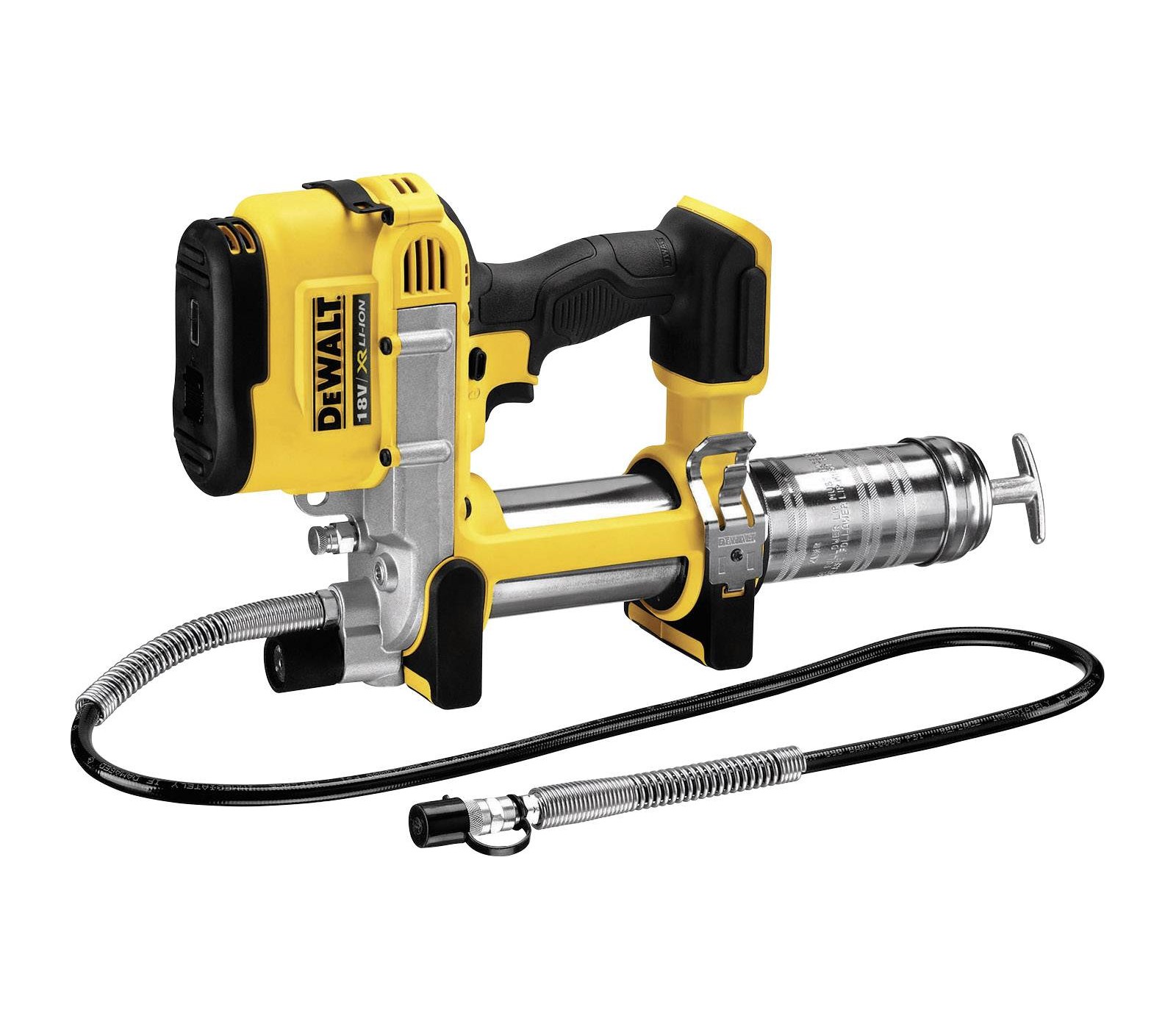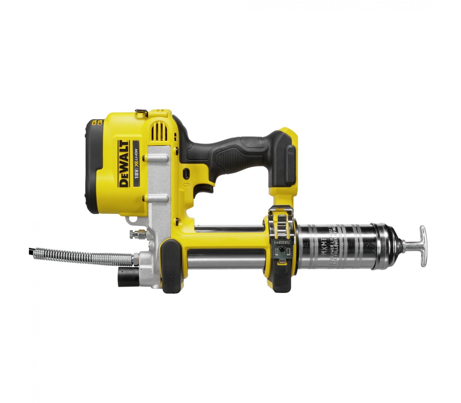 De Dewalt DCGG571NK-XJ draadloze vetpistool levert een krachtige motor die tot 689 bar (10 000 max psi) gaat, ideaal voor het doorspoelen van verstoppingen in vet-aansluitingen. De hoogvolume pomp pompt tot 148 ml/min voor toepassingen met hoge doorstroming en kan tot 16 patronen per oplading met een 4 Ah batterij leveren. De variabele snelheidstrigger biedt precisiecontrole over de vetstroom en de 42-inch extra lange slang maakt het mogelijk om moeilijk bereikbare aansluitingen te bereiken. Het ingebouwde LED-licht zorgt voor zichtbaarheid bij weinig licht, en het ingebouwde ontluchtingsventiel laat ingesloten lucht ontsnappen.