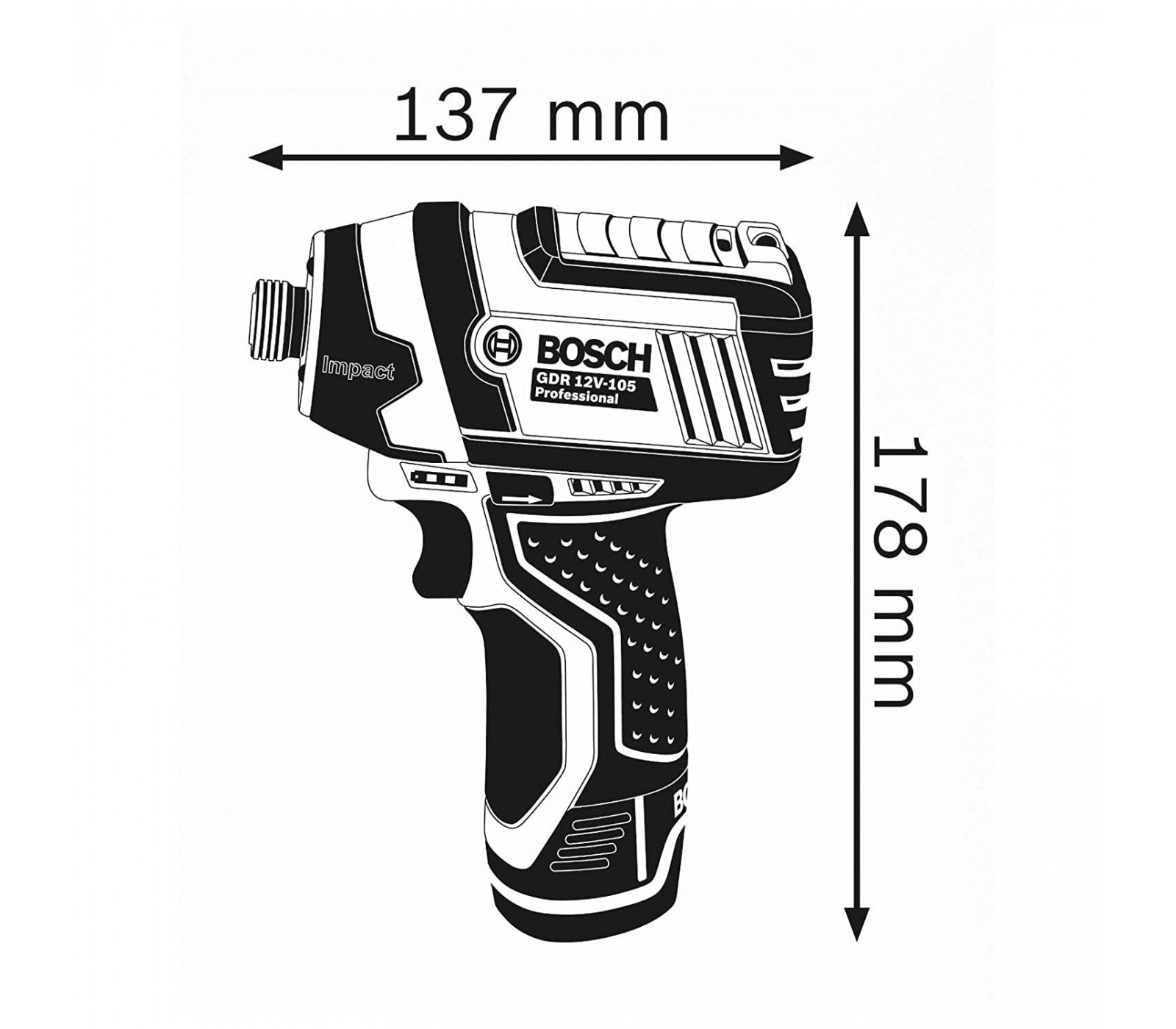 Akumuliatorinis smūginis suktuvas Bosch GDR 12V-105 + lagaminas (be akumuliatoriaus ir įkroviklio)