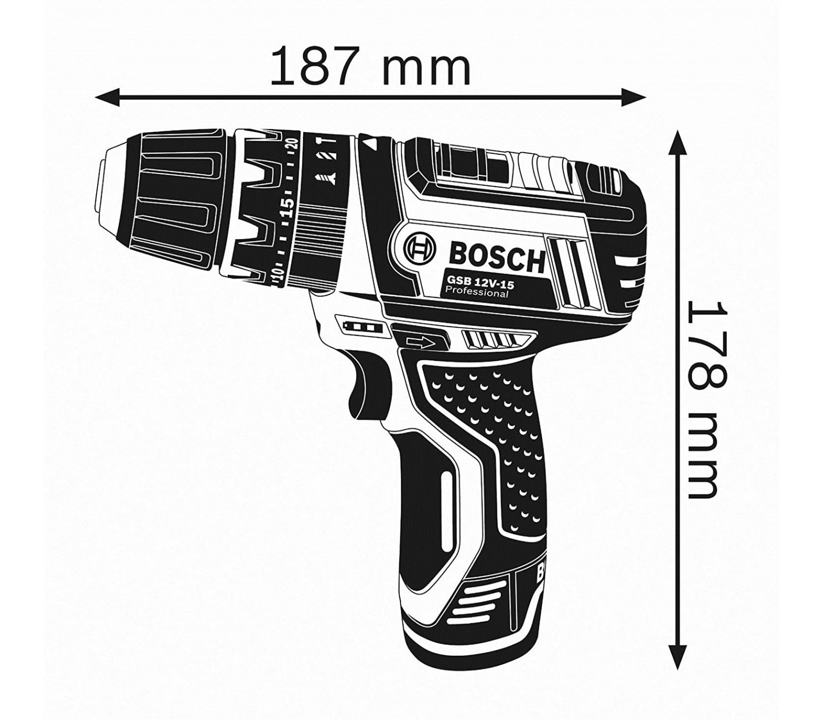 Akumuliatorinis smūginis suktuvas Bosch GSB 12V-15, 12 V (be akumuliatoriaus ir įkroviklio)