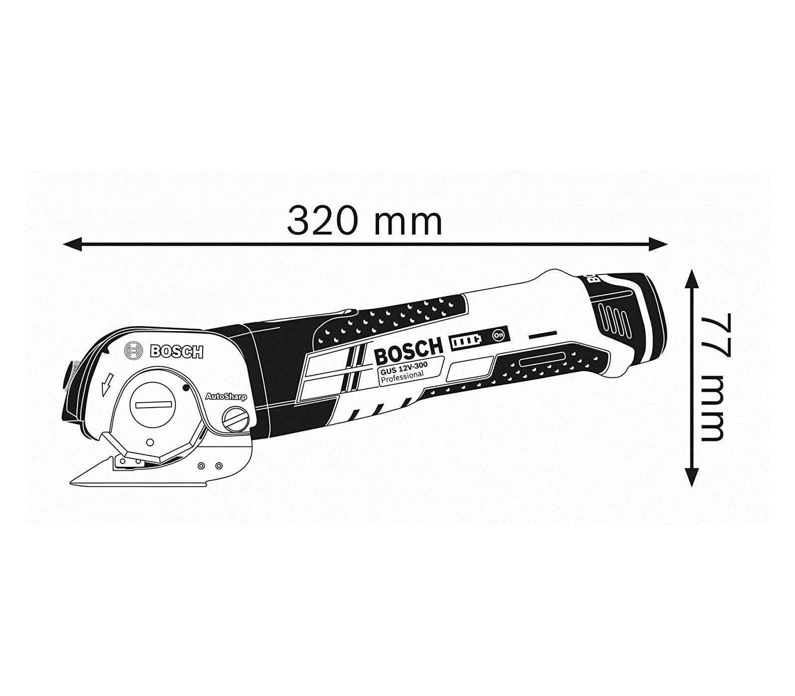 Akumuliatorinės universalios žirklės Bosch GUS 12V-300, 12 V (be akumuliatoriaus ir įkroviklio)
