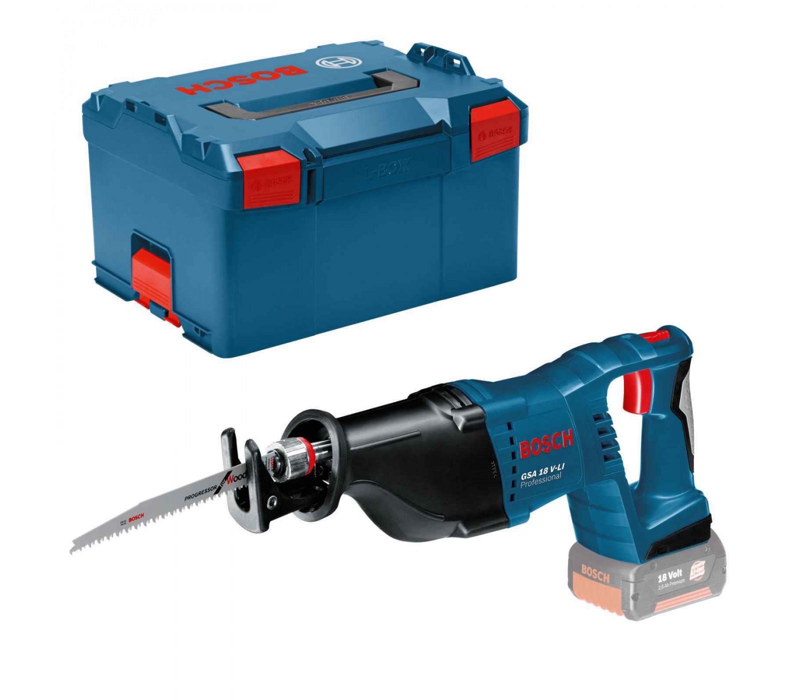 Akumuliatorinis tiesinis pjūklas Bosch GSA 18 V-LI , pjūkliukai + lagaminas L-Boxx 238