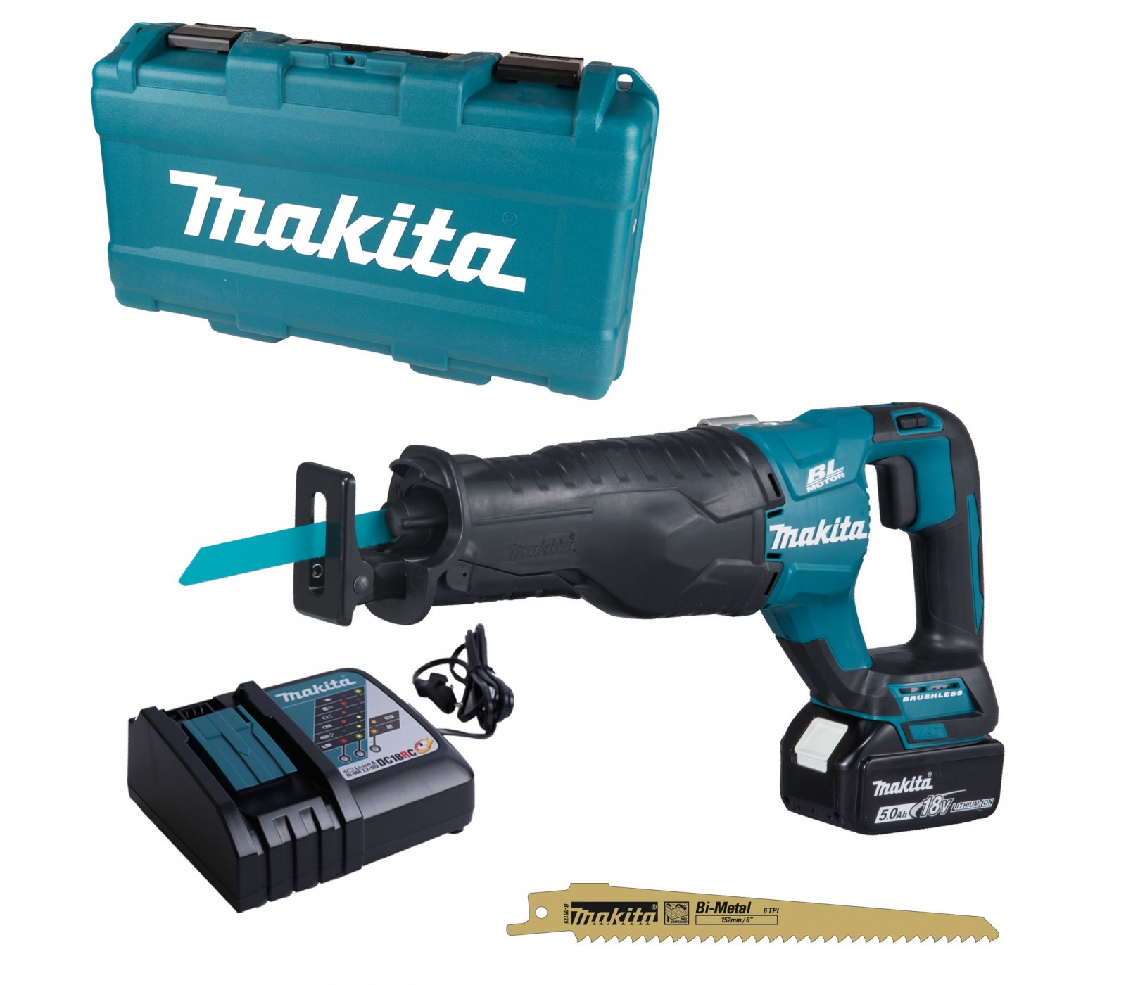 Akumuliatorinis tiesinis pjūklas Makita (DJR187RT), 18 V, 1 x 5 Ah, įkroviklis + lagaminas
