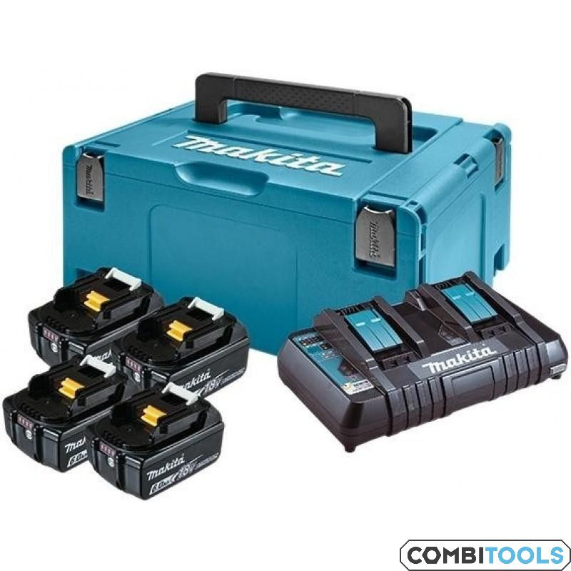 Baterijų rinkinys Makita BL1860B (+4x BL1860B baterija + dvigubas greitas įkroviklis DC18RD + MAKPAC III dėklas)