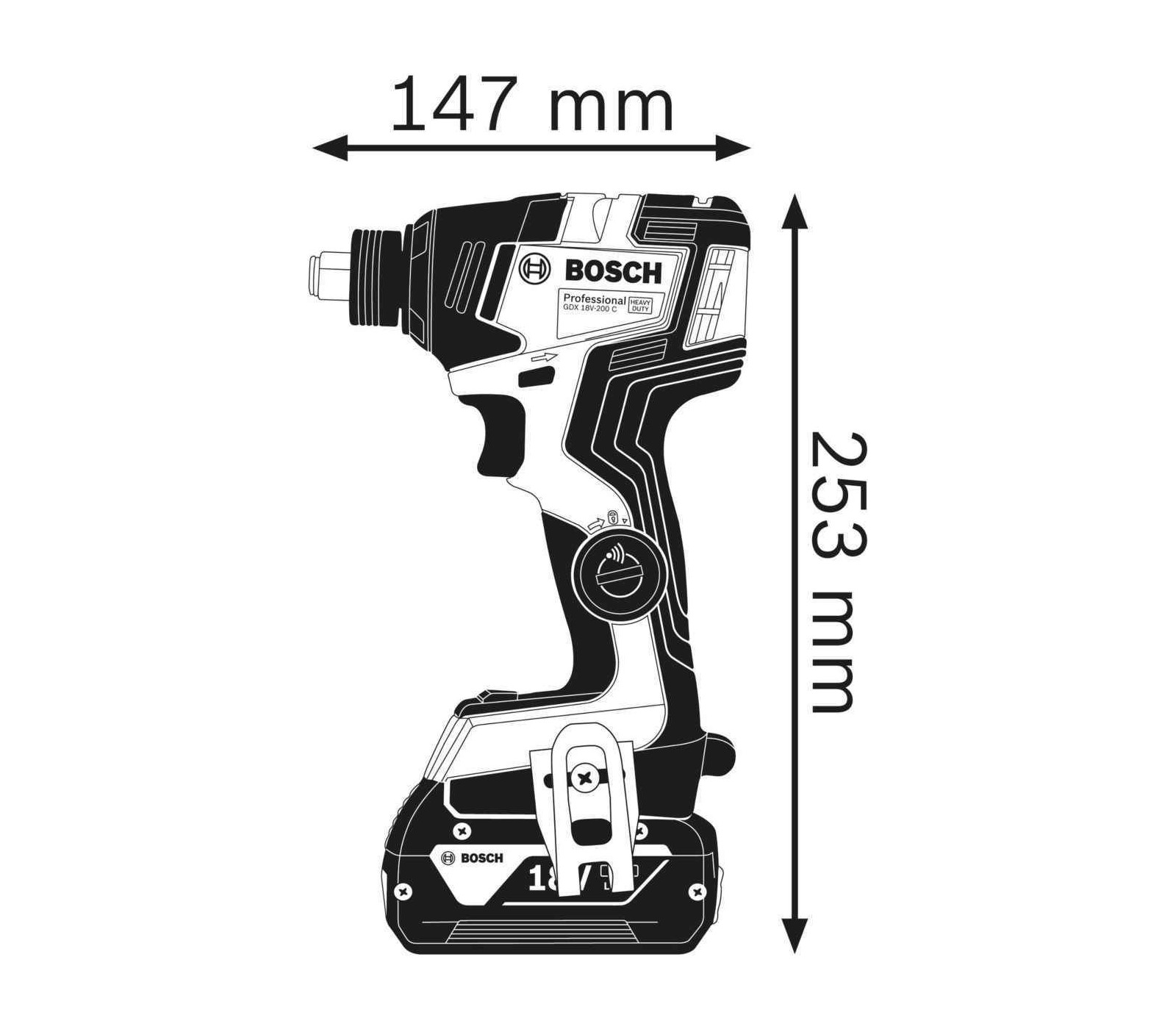 Akumuliatorinis smūginis veržliasukis Bosch GDX 18V-200 C, 18 V (be akumuliatoriaus ir įkroviklio)