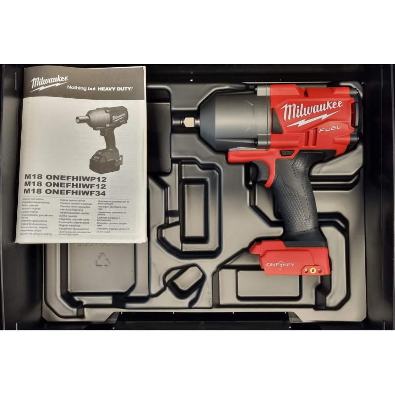 Akumuliatorinis smūginis veržliasukis su kakliuko užkirtimu Milwaukee M18 ONEFHIWP12-0X, 18 V, 1491 Nm, 1/2" + lagaminas