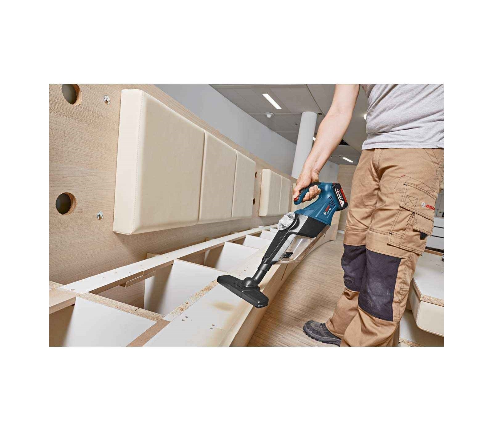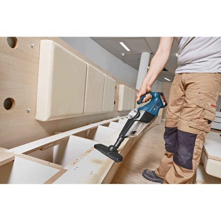 De Bosch GAS 18V-1 is een compacte, draadloze handstofzuiger die ideaal is voor het eerste droge reinigen. Het heeft een stofcontainer van 0,7L, een maximale luchtstroom van 10 l/s en een maximale zuigkracht van 60 mbar. Lichtgewicht (1,3 kg zonder batterij), gemakkelijk te hanteren en te vervoeren, past in een L-BOXX. Compatibel met Bosch Professional 18V-batterijen en het AMPShare-batterijplatform.