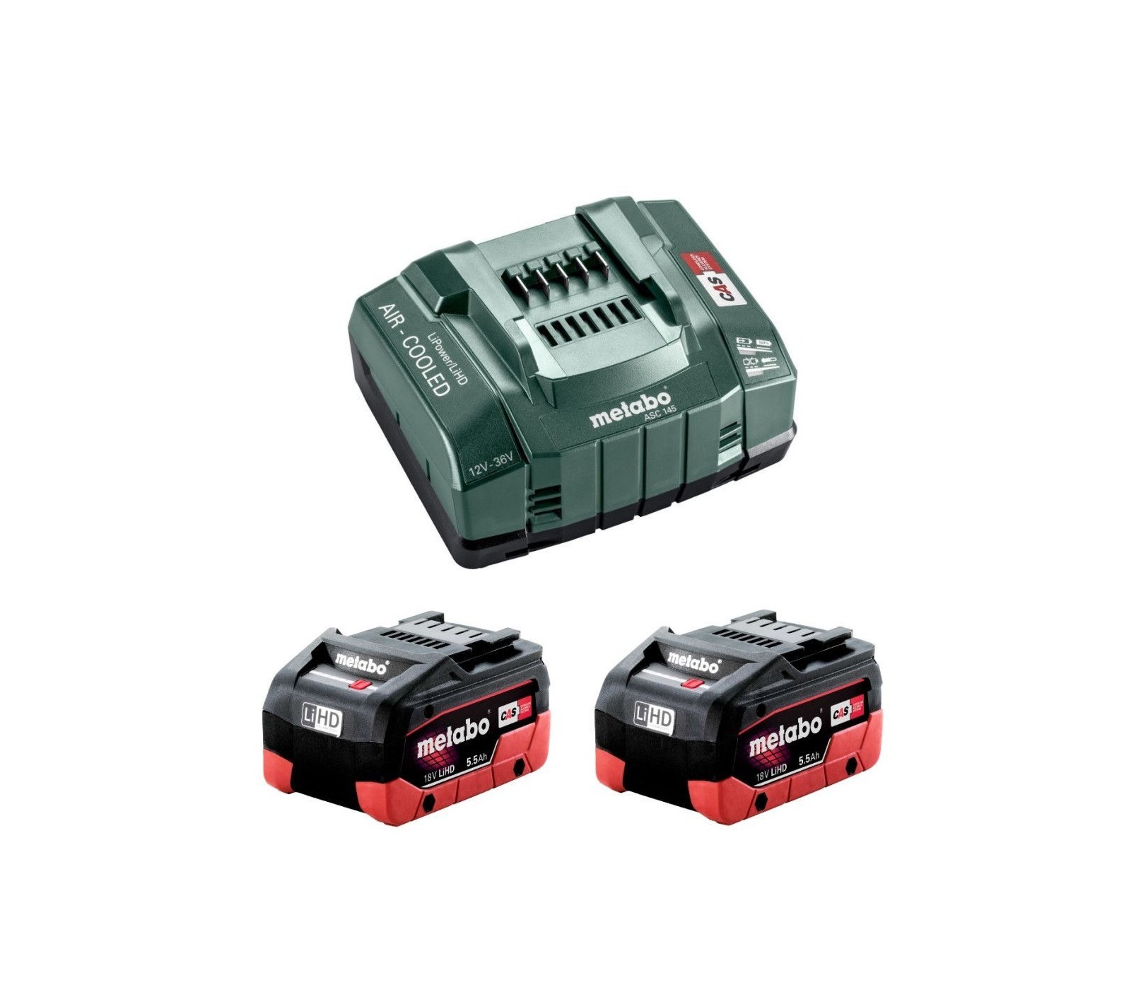 Akumuliatorių 2 x 5,5 Ah, 18 V ir įkroviklio ASC 145 rinkinys Metabo Basic (685122000)