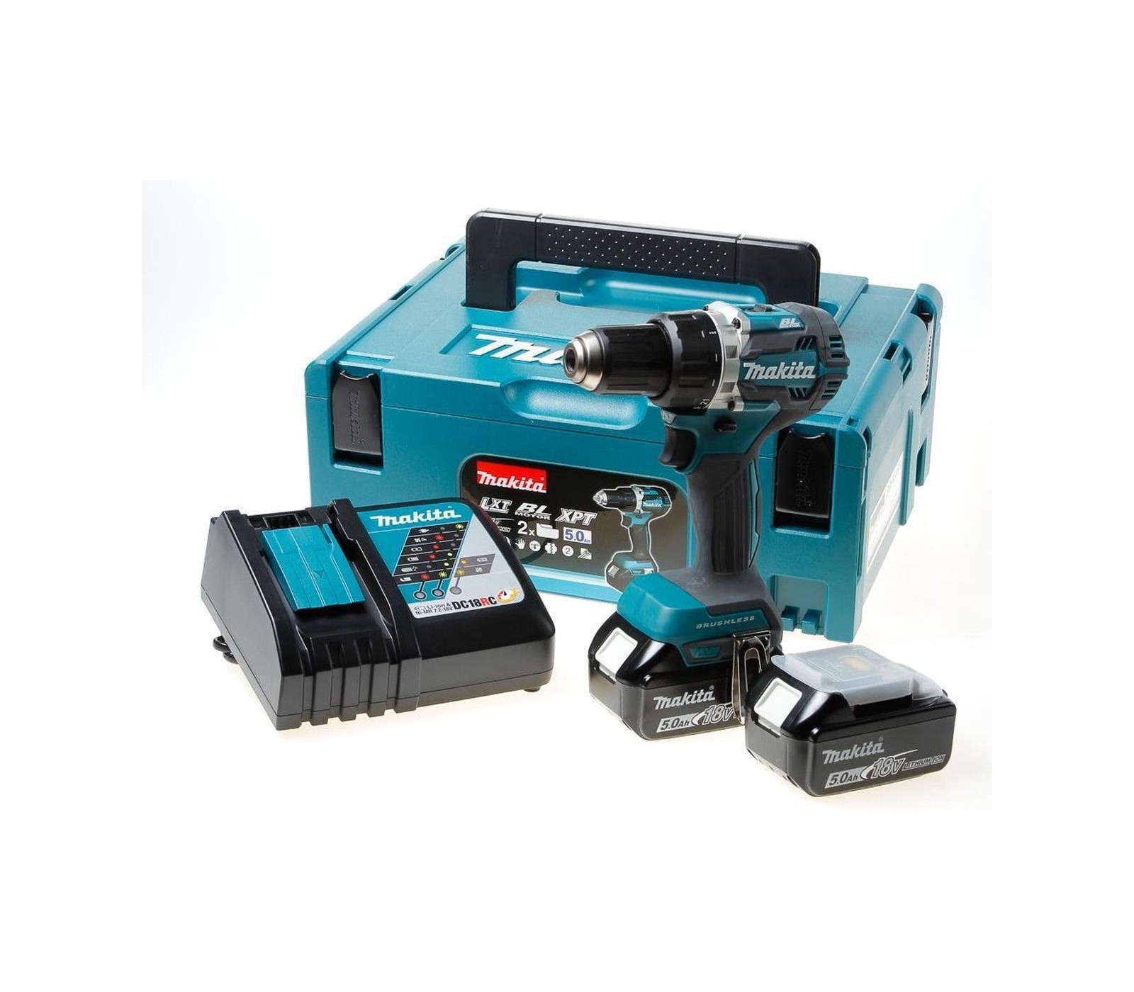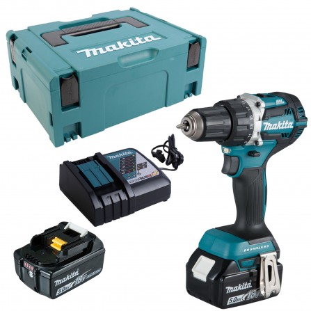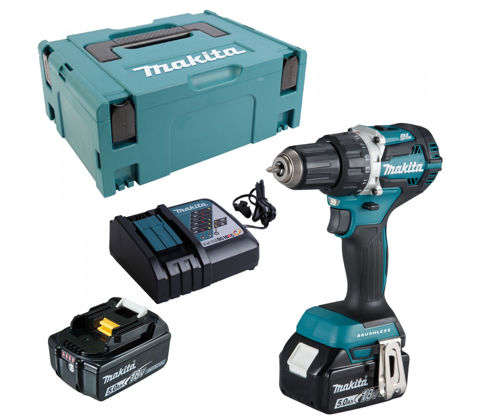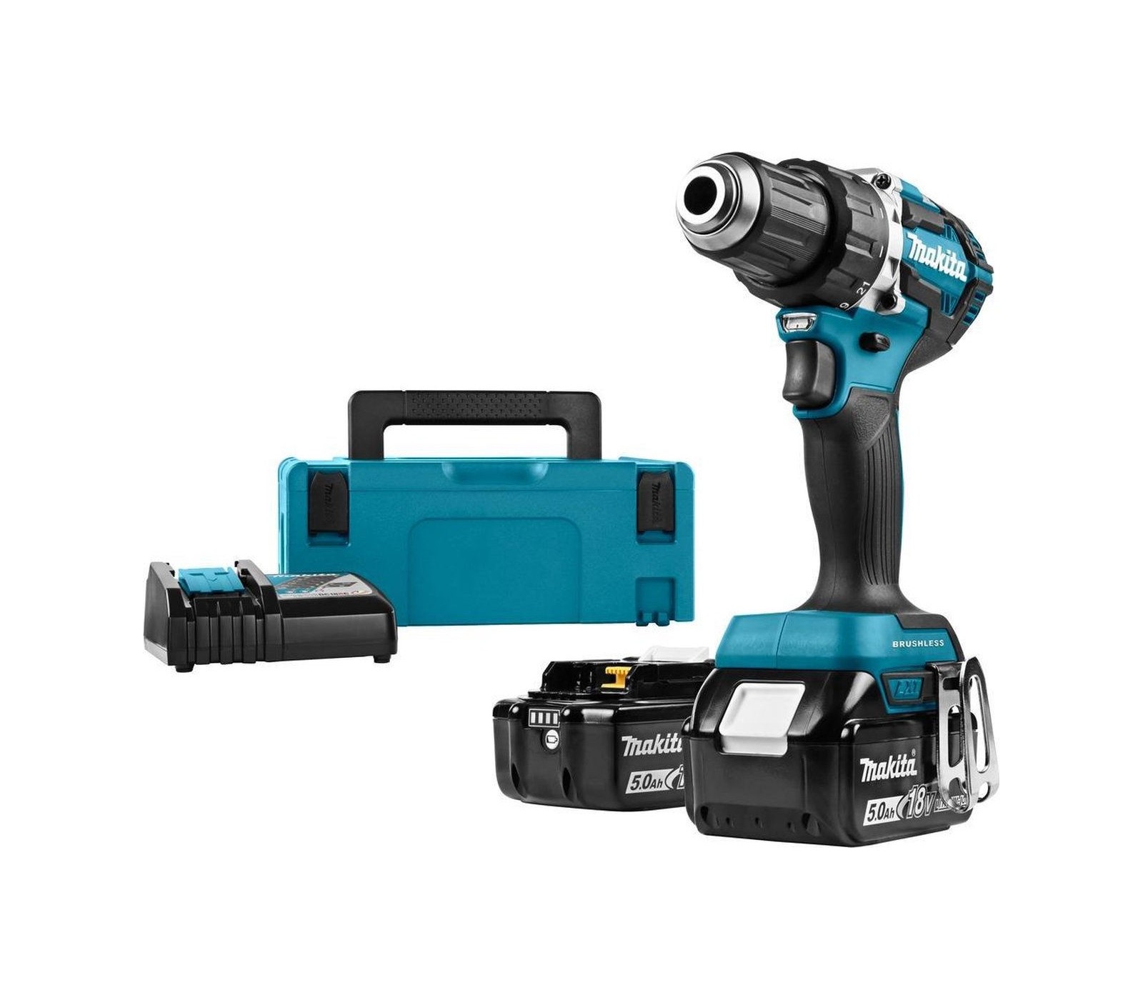 Makita DDF484RTJ rinkinys su 18 V gręžtuvu, 2 x 5 Ah akumuliatoriais, įkrovikliu ir lagaminu yra idealus pasirinkimas intensyviems darbams.
