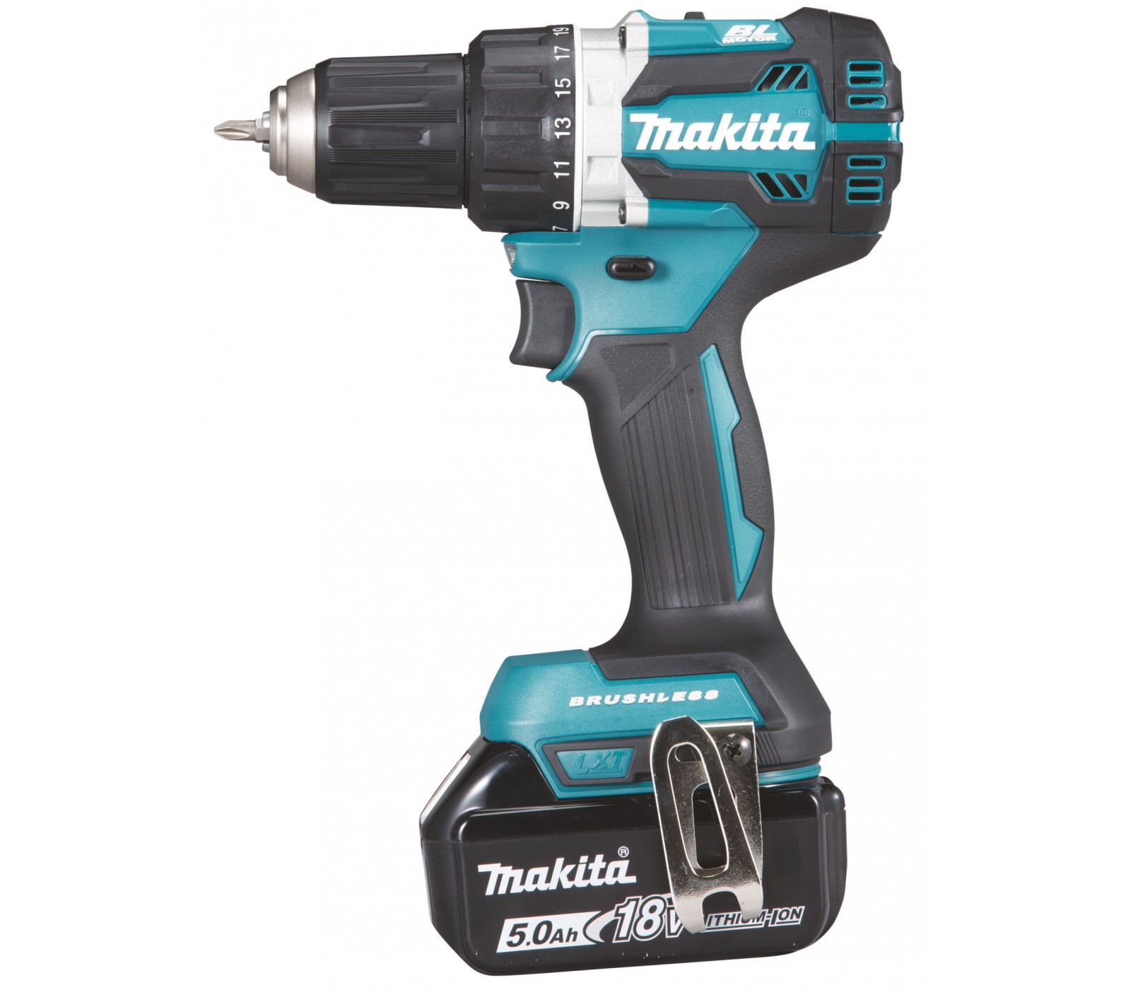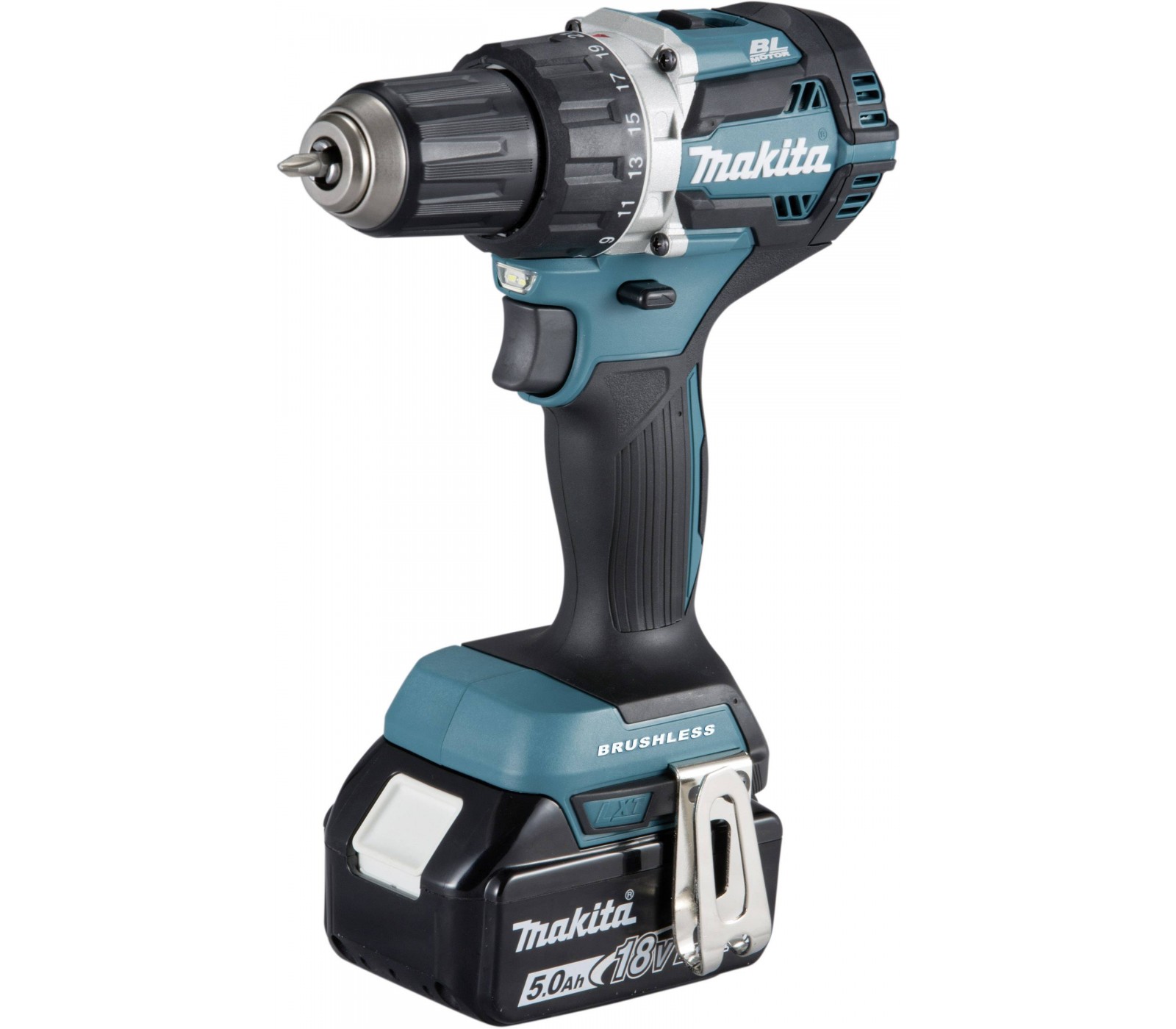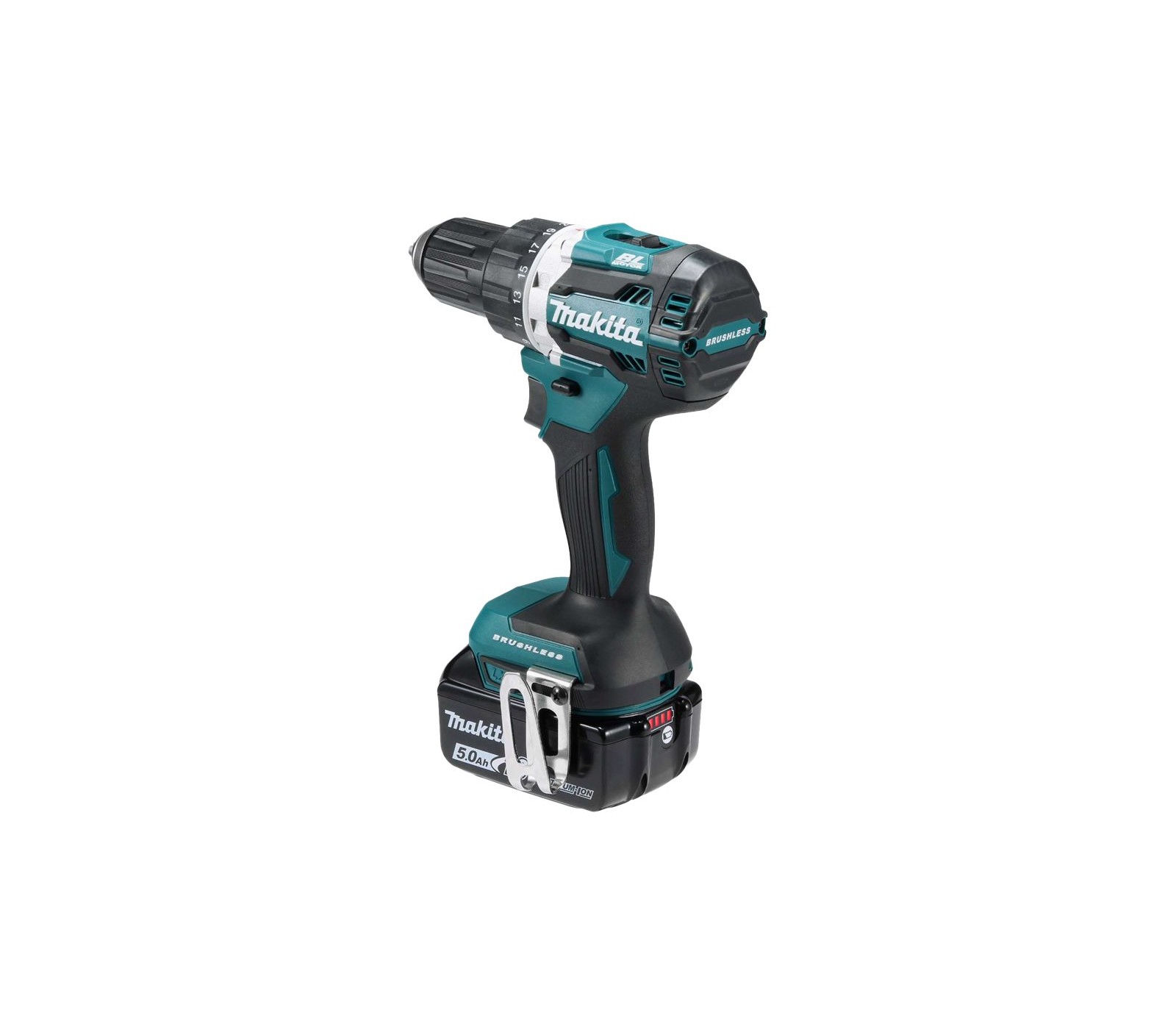 Makita DDF484RTJ rinkinys su 18 V gręžtuvu, 2 x 5 Ah akumuliatoriais, įkrovikliu ir lagaminu yra idealus pasirinkimas intensyviems darbams.