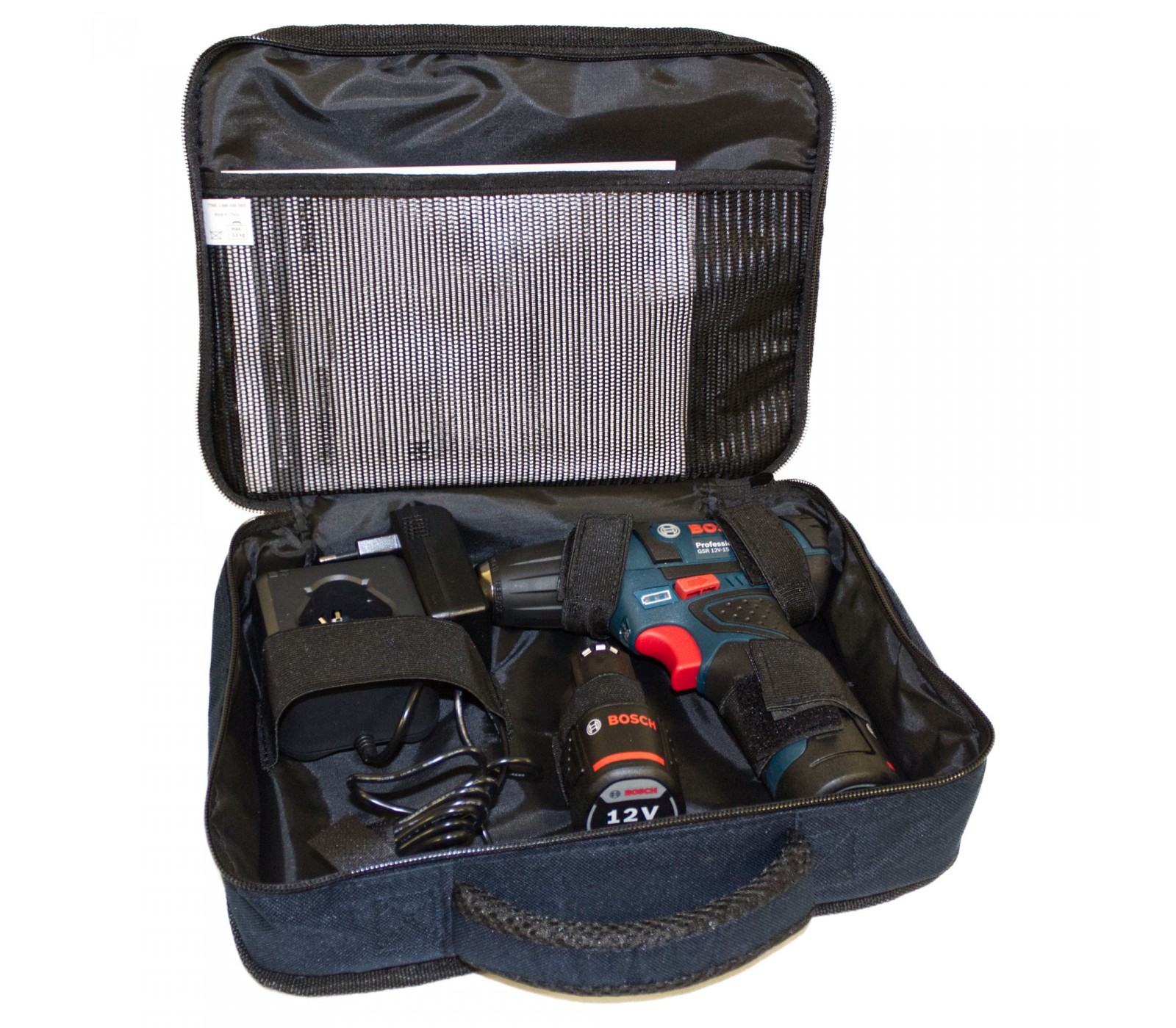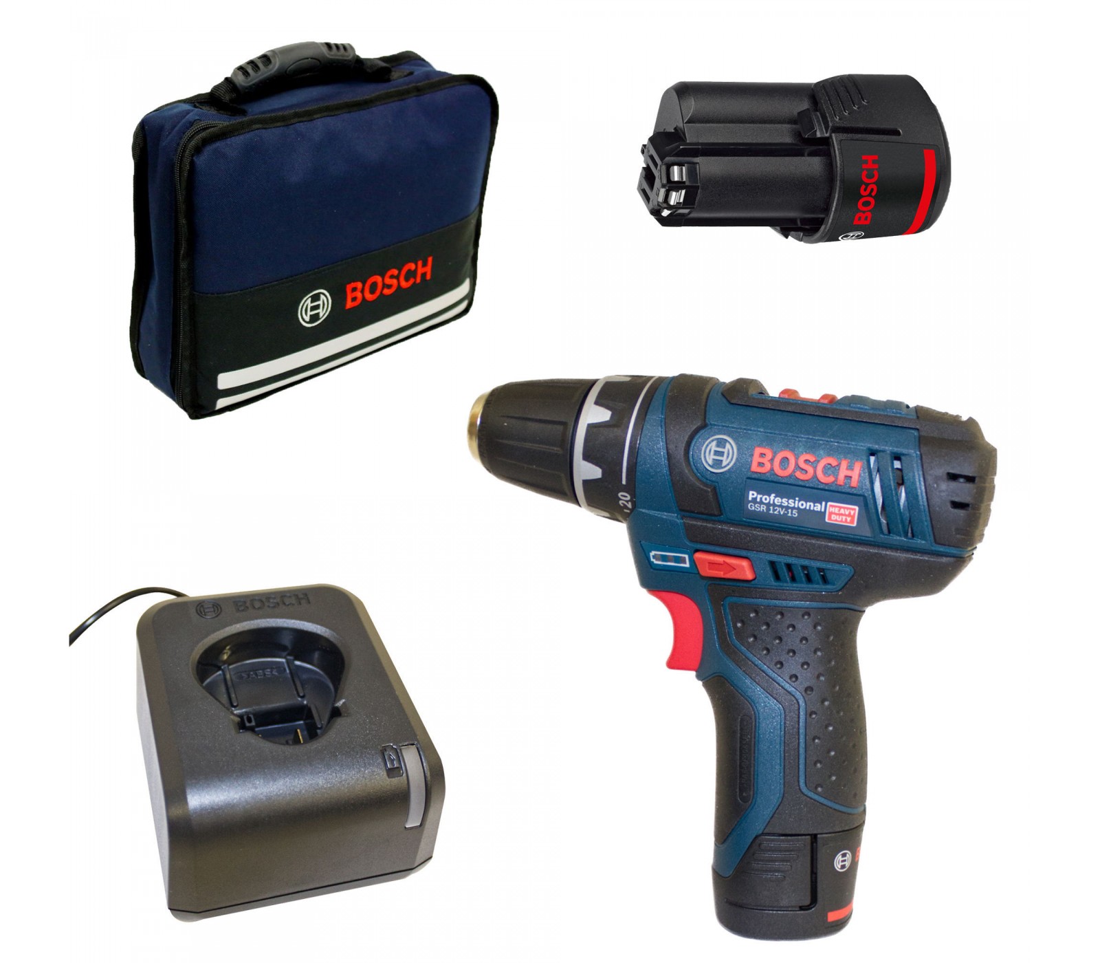 Akumuliatorinio suktuvo Bosch GSR 12V-15 (060186810F) rinkinys, 12 V, 2 x 2 Ah, įkroviklis + krepšys