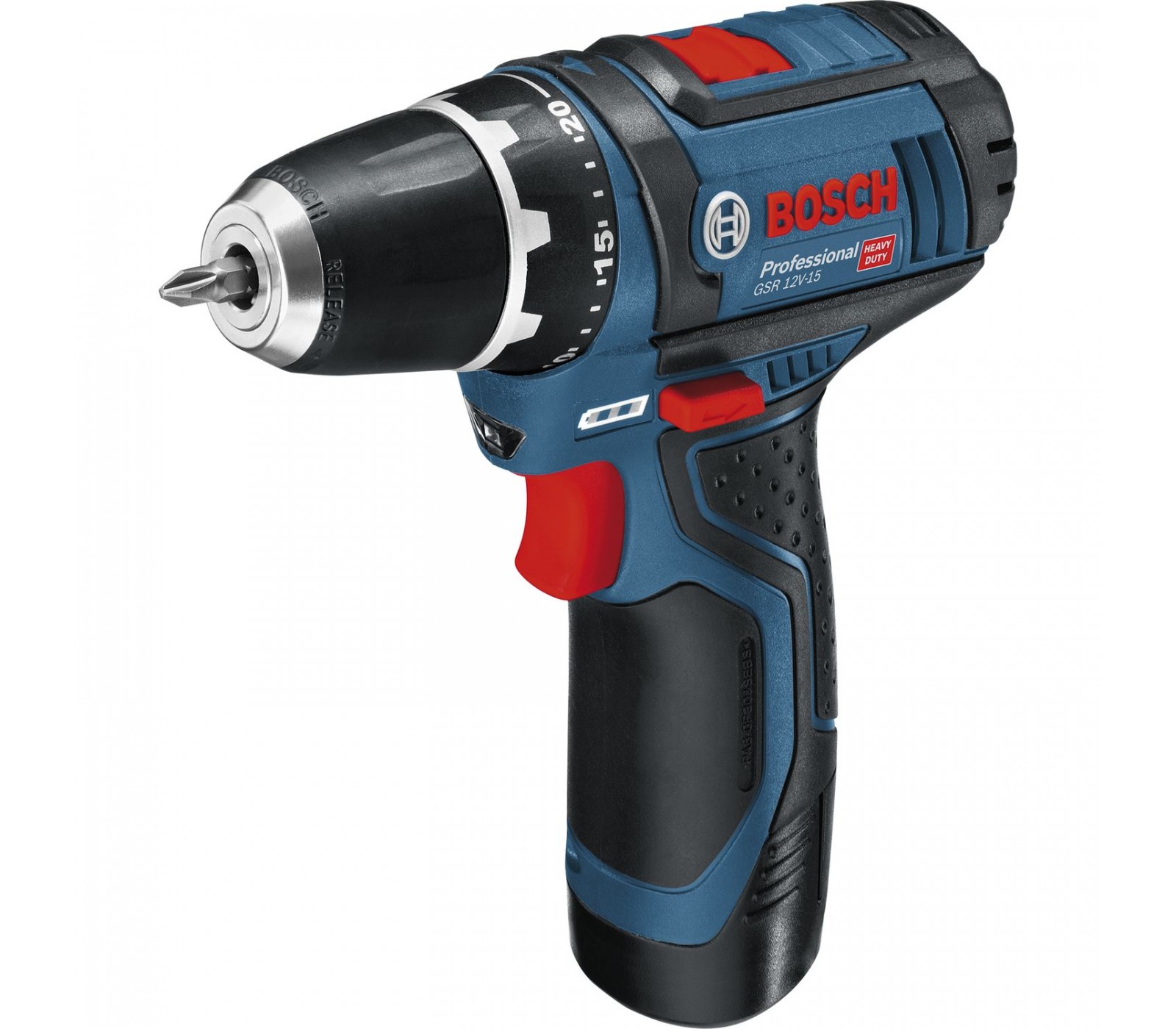 Bosch GSR 12V-15 (060186810F) – een compacte accuschroefmachine met 30 Nm draaikoppel en een twee-snelheidstransmissie.