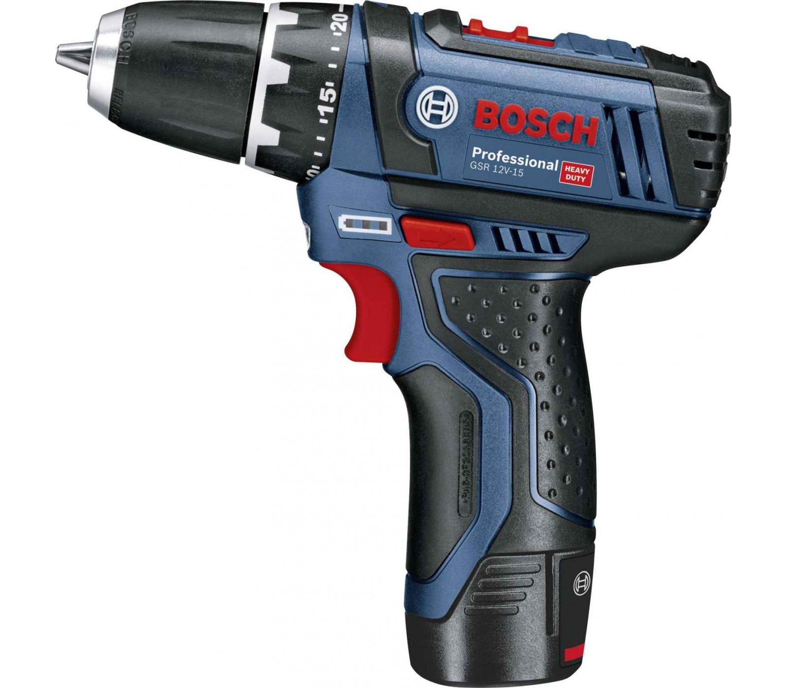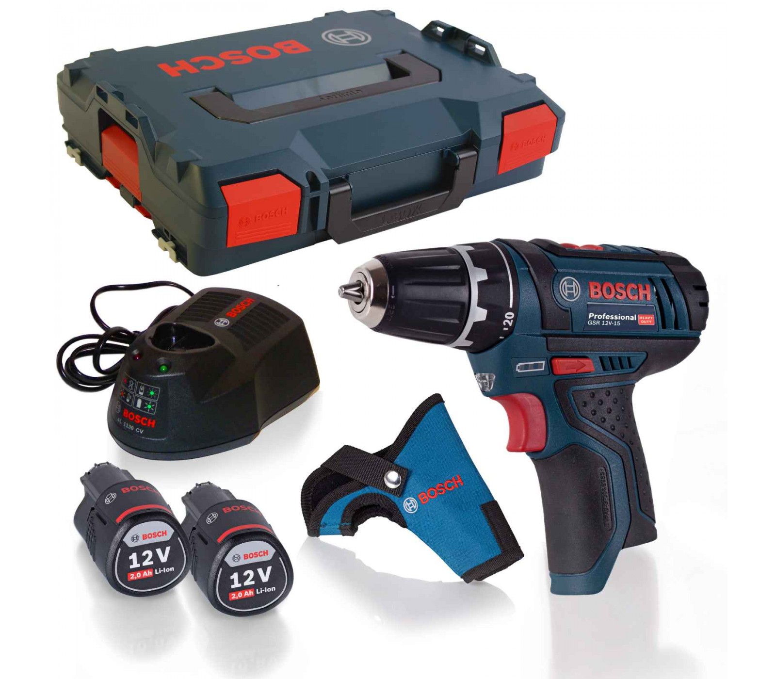 Akumuliatorinio suktuvo Bosch GSR 12V-15 rinkinys, 12 V, 2 x 2 Ah, įkroviklis + lagaminas