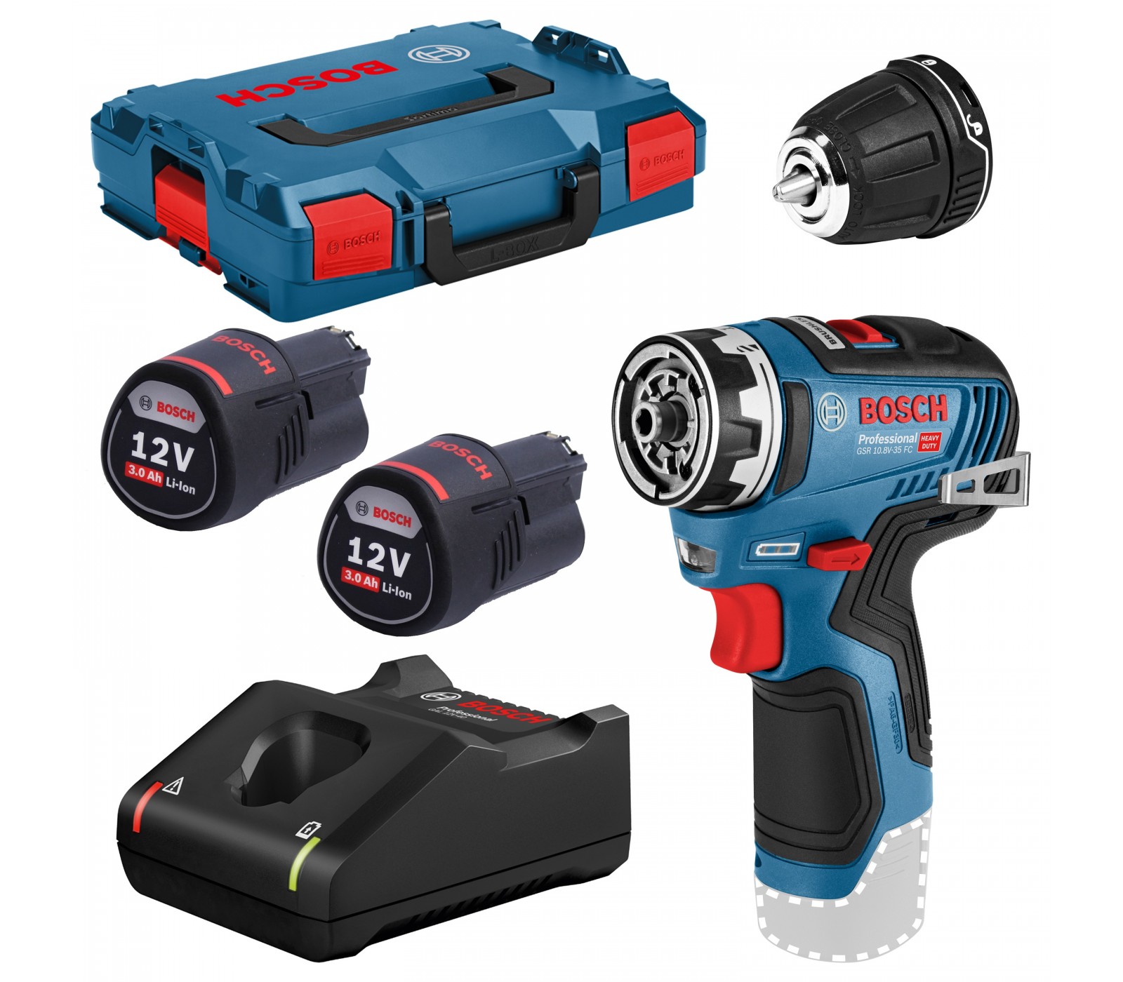 Akumuliatorinio suktuvo Bosch GSR 12V-35 FC rinkinys, 12 V, 2 x 3 Ah, įkroviklis + lagaminas