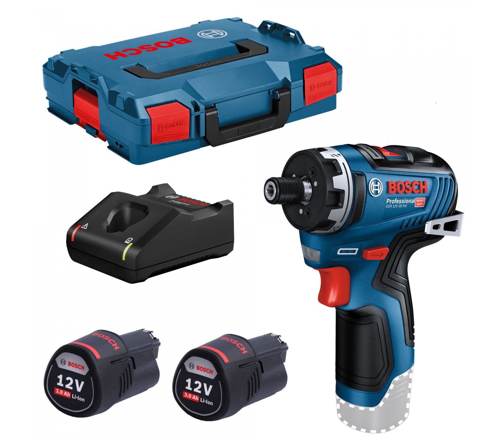 Akumuliatorinio suktuvo Bosch GSR 12V-35 HX rinkinys, 12 V, 2 x 3 Ah, įkroviklis + lagaminas