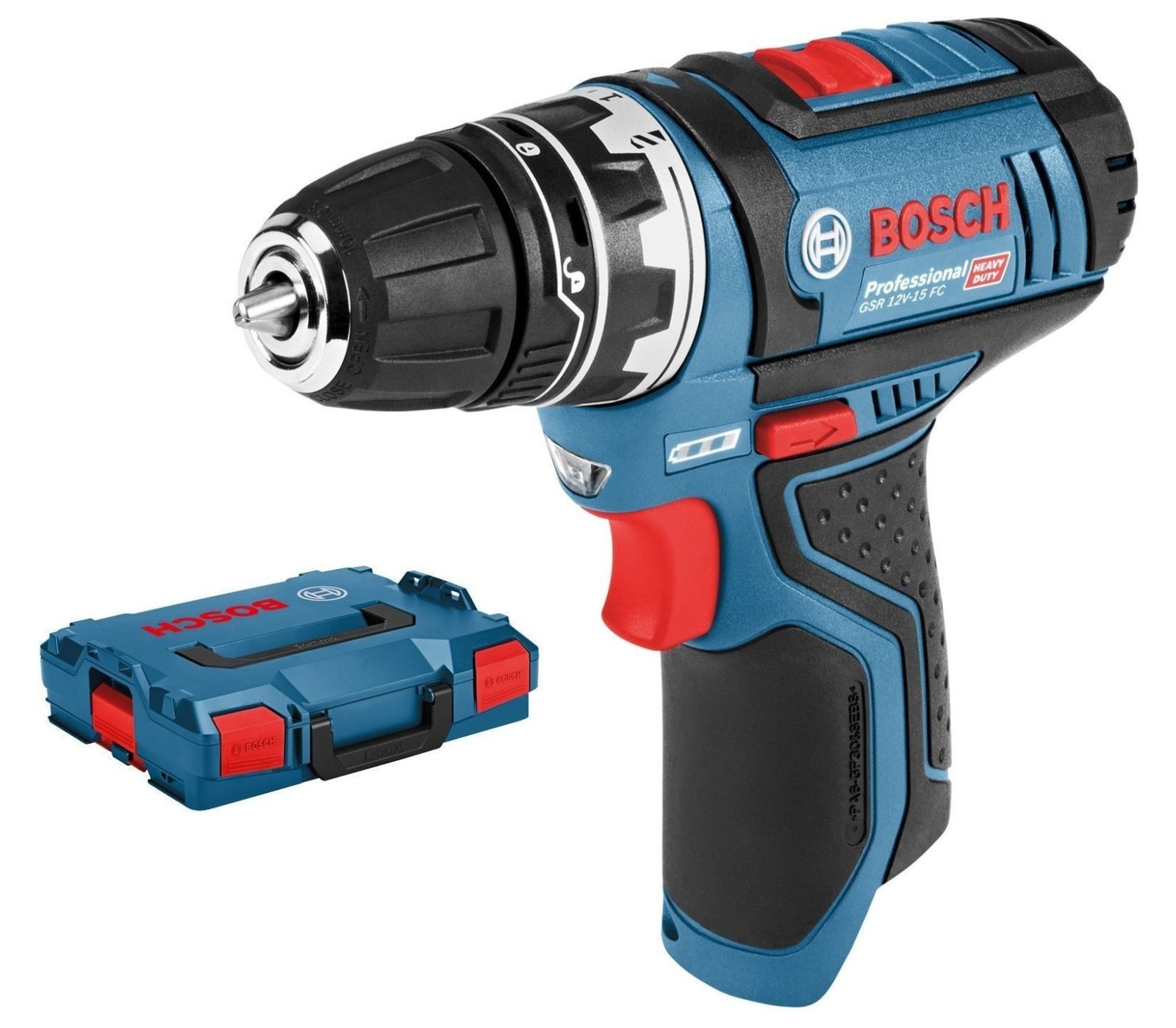 Akumuliatorinis suktuvas Bosch GSR 12 V-15 FC + lagaminas L-Boxx 102