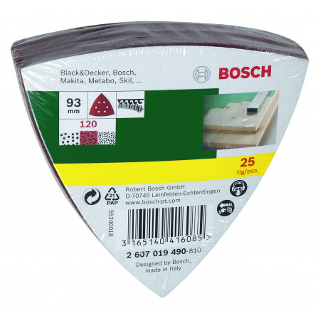 Bosch šlifavimo popierių rinkinys, 93 x 115 mm, 180 grūdėtumas, 25 vnt.